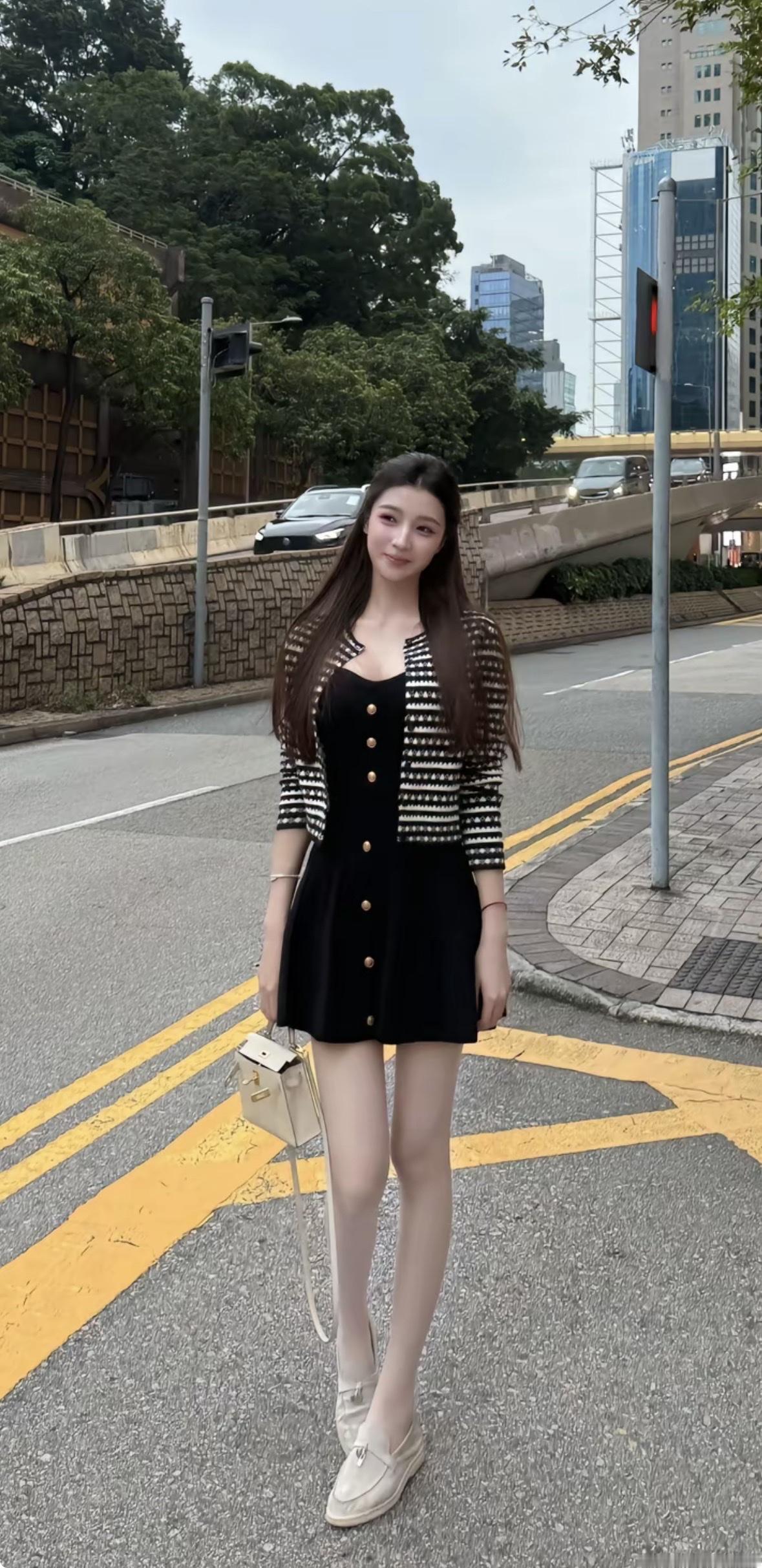 都市街拍穿搭指南,黑白条纹外套搭配黑色短裙,时尚又优雅!