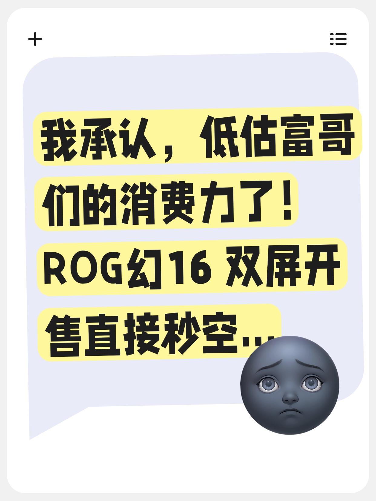开售直接秒空...到底是谁在买ROG幻16 双屏? 还是低估富哥们的消费力了, ROG幻16 双屏刚开售没多久,线上直接就被抢断货了.... 要是早知道这么抢手,我就去碰碰运气, 抢到了说不定还能加点再卖出去 不过说真的,这玩意也确实有点东西 从杜海涛分享的开箱视频可以看到, 双屏设计特别吸睛,多种使用形态也很有新意, 不管是打游戏、剪视频还是日常办公都很合适。 配置更不用多说,酷睿U9+RTX5090,64GB运存, 主打一个能给到的全都给了 再加上这次外观处理得特别高级, 既有极客的硬核,又不失商务的高级感, 没有那种傻大黑粗的感觉,就问谁看了不迷糊? ROG幻16双屏 数码日常 高端电脑 多屏协同 我的办公神器