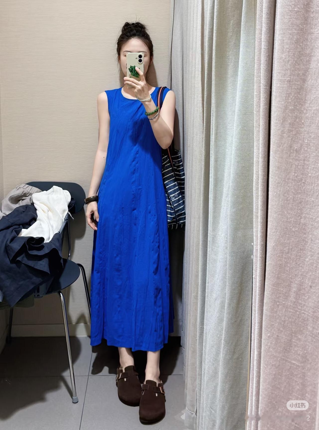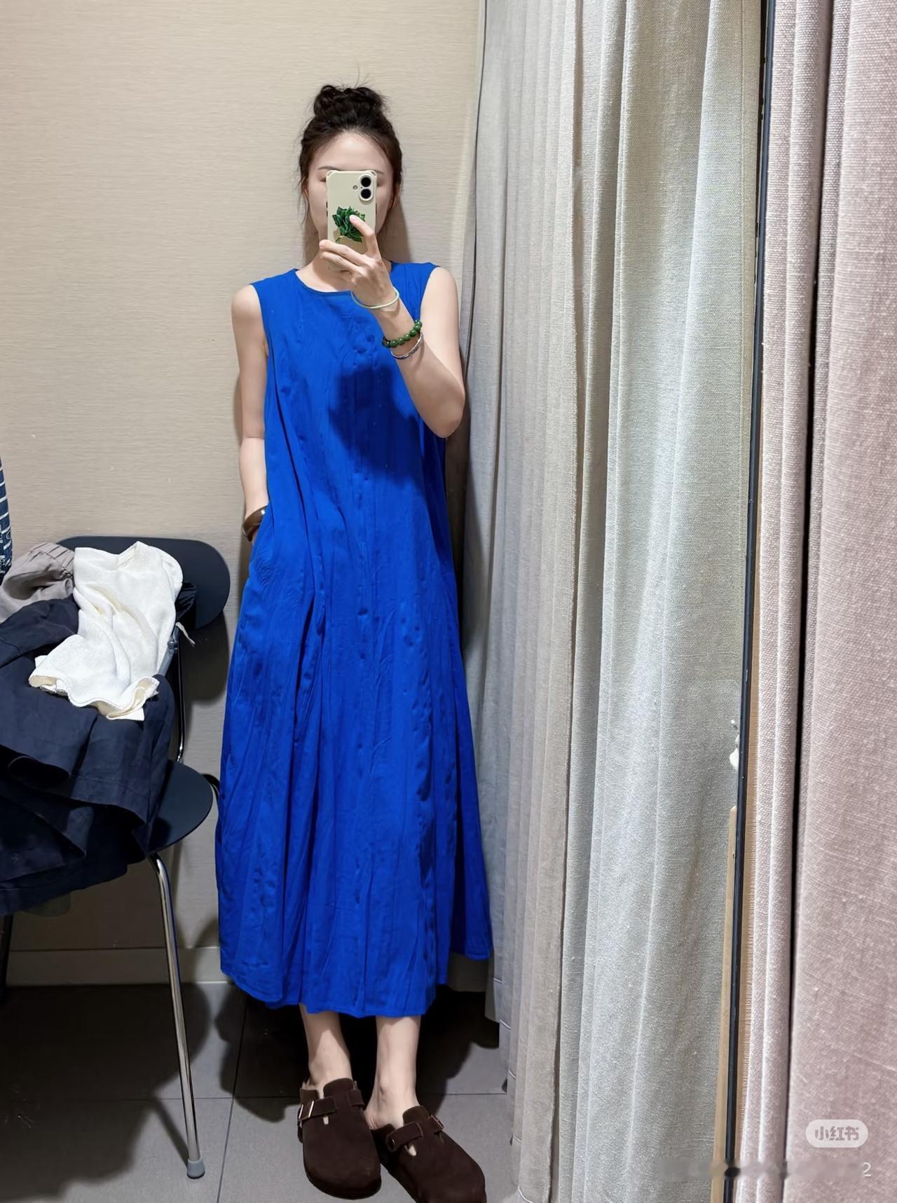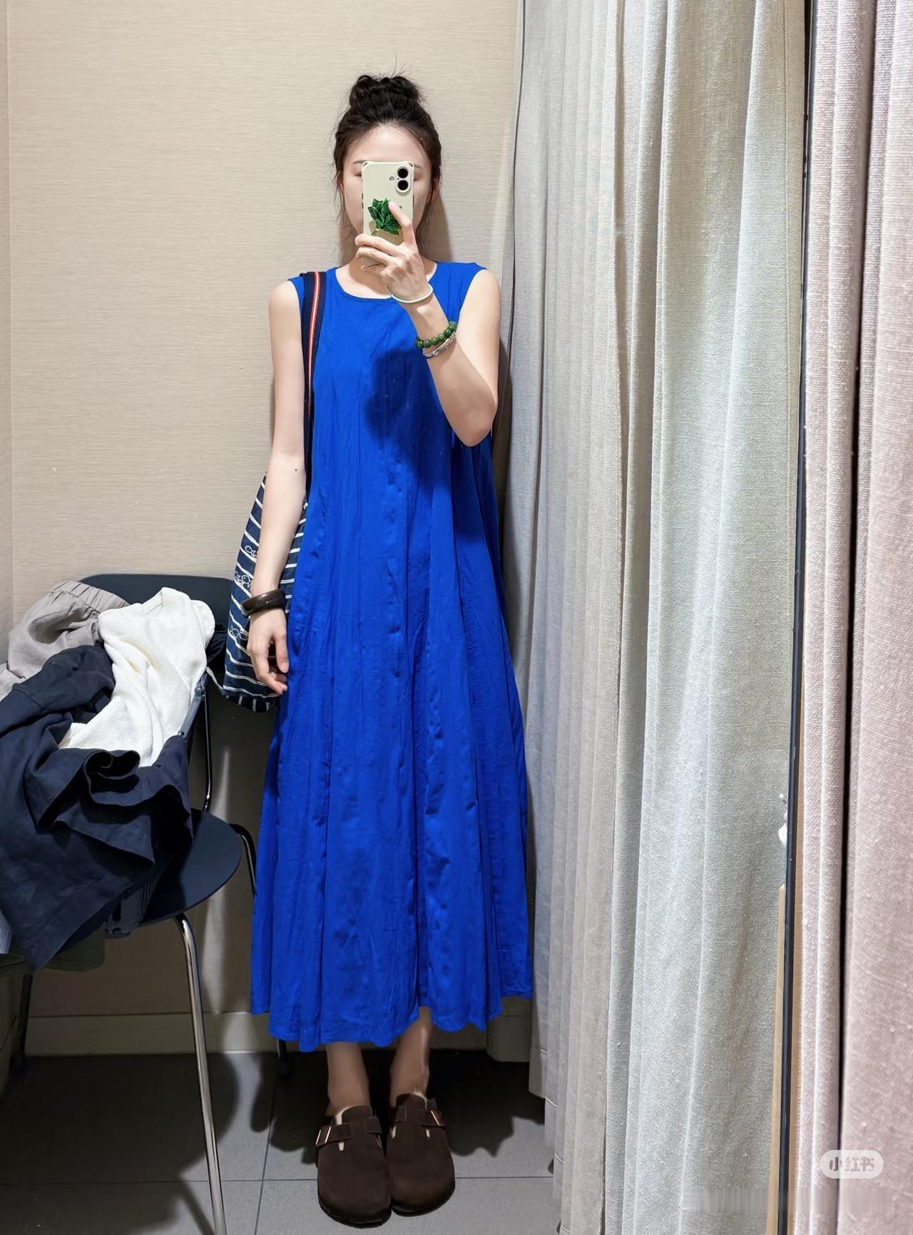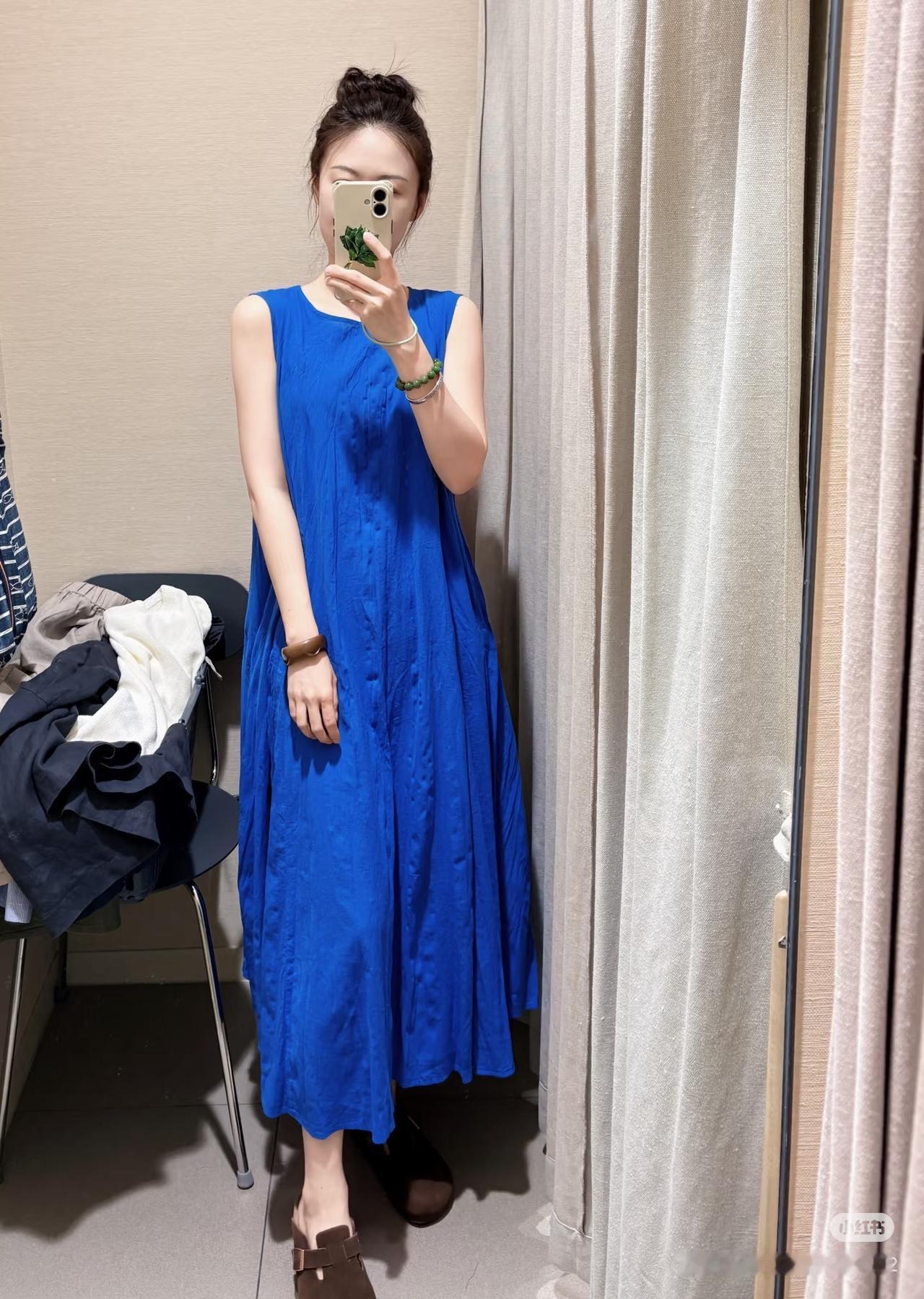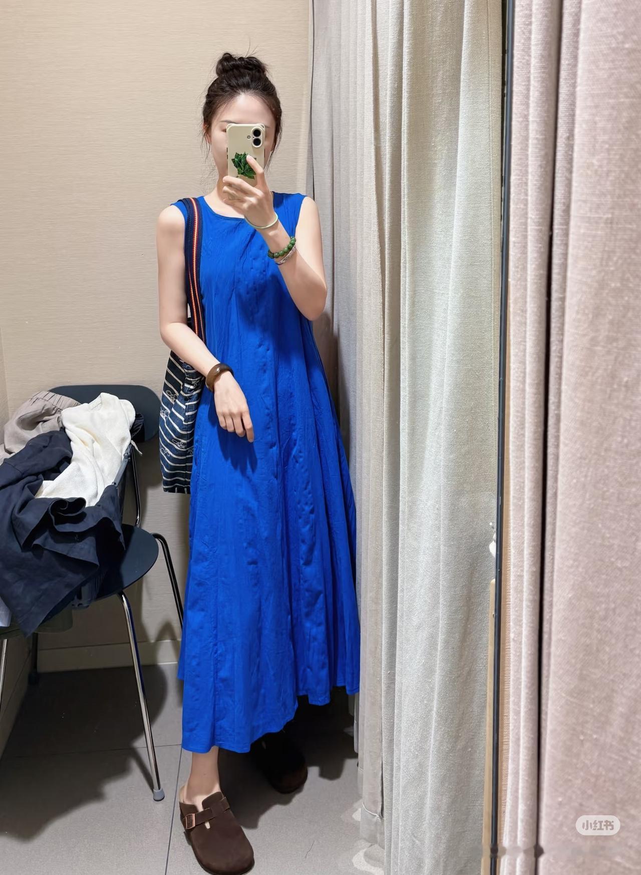 Muji这件显白神器都试了吗~论如何显白,Muji绝对是认真的,克莱因蓝裙子轻柔舒适就算了,还直接让皮肤提亮一个度!姐妹们快去试一试啊