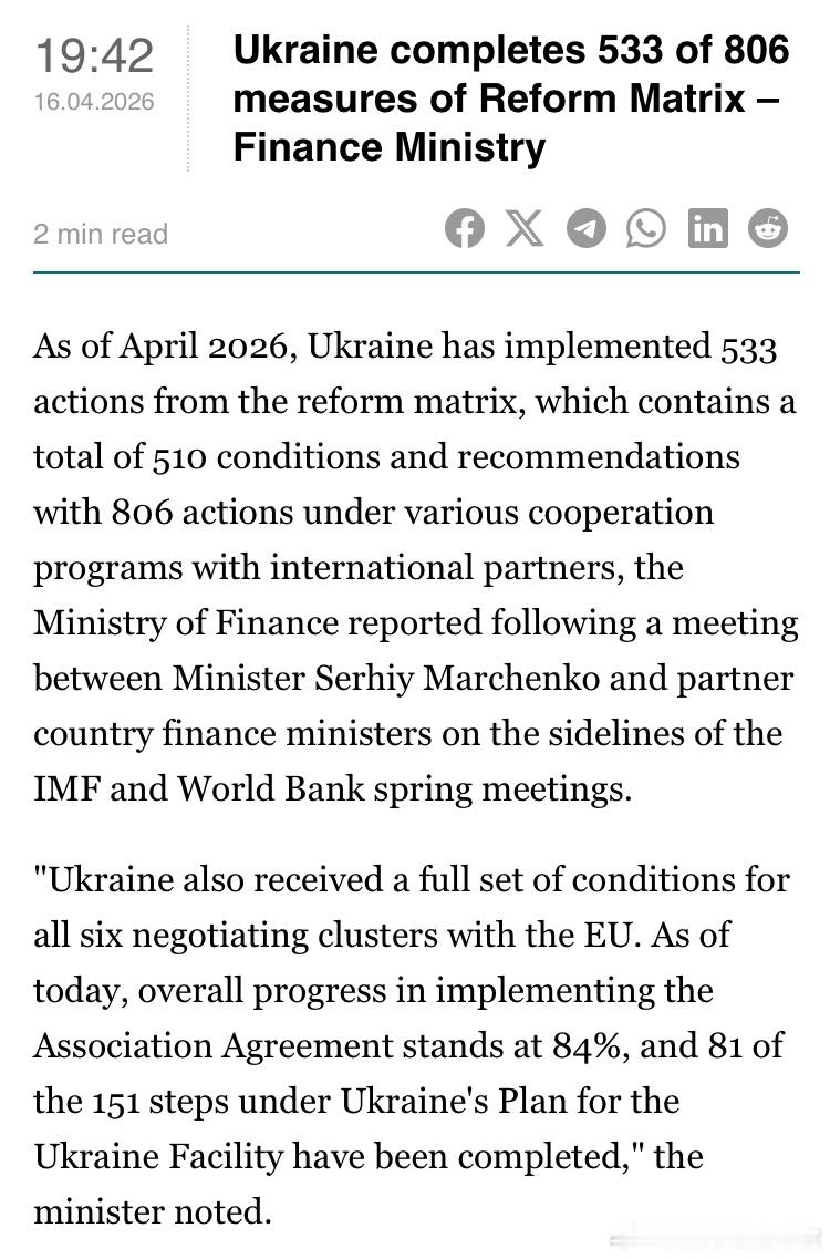 根据乌克兰官方的新闻,乌克兰加入欧盟的计划进度已经完成84%,入欧计划的151步