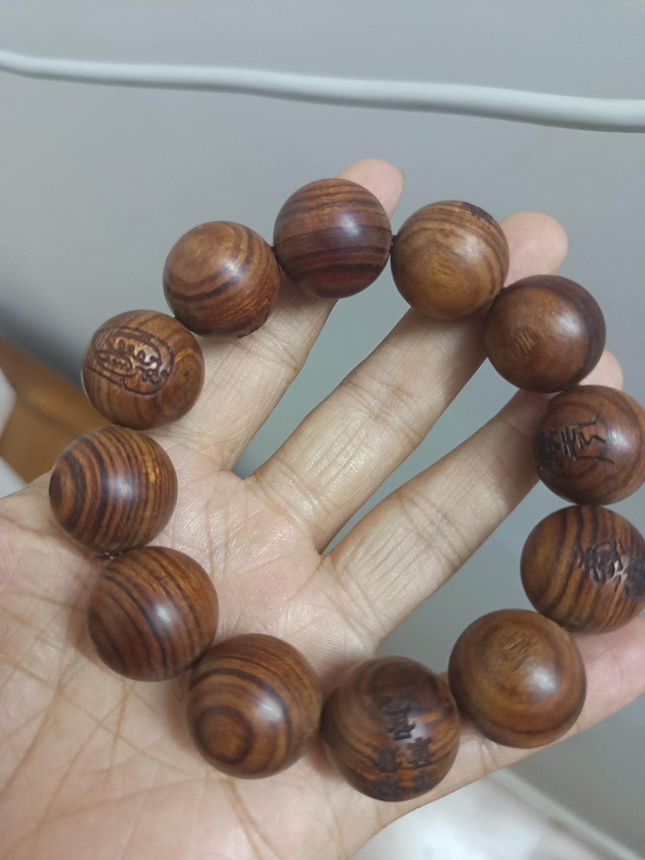 在街上捡到这样一个一个手串,手串上面有一些很奇怪的符号,这是什么来的?有人知道吗