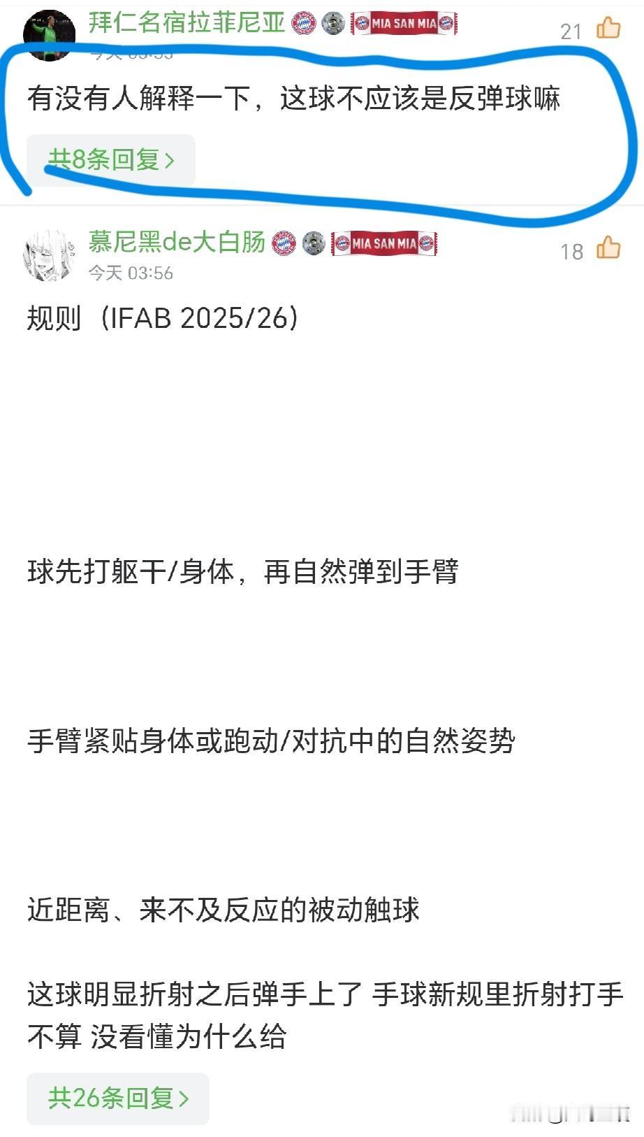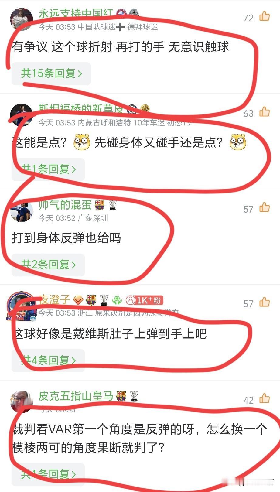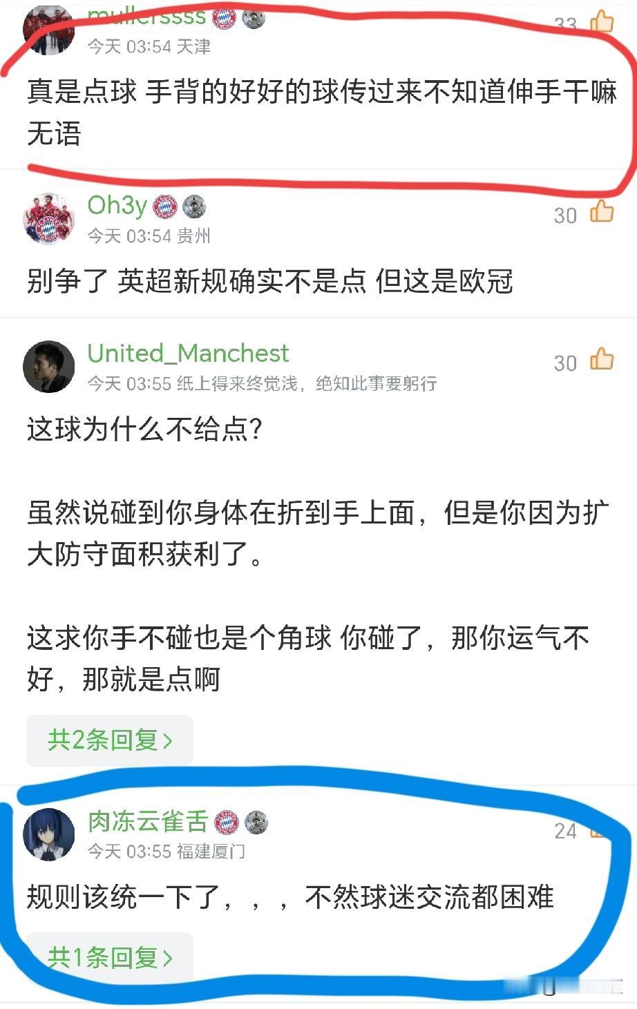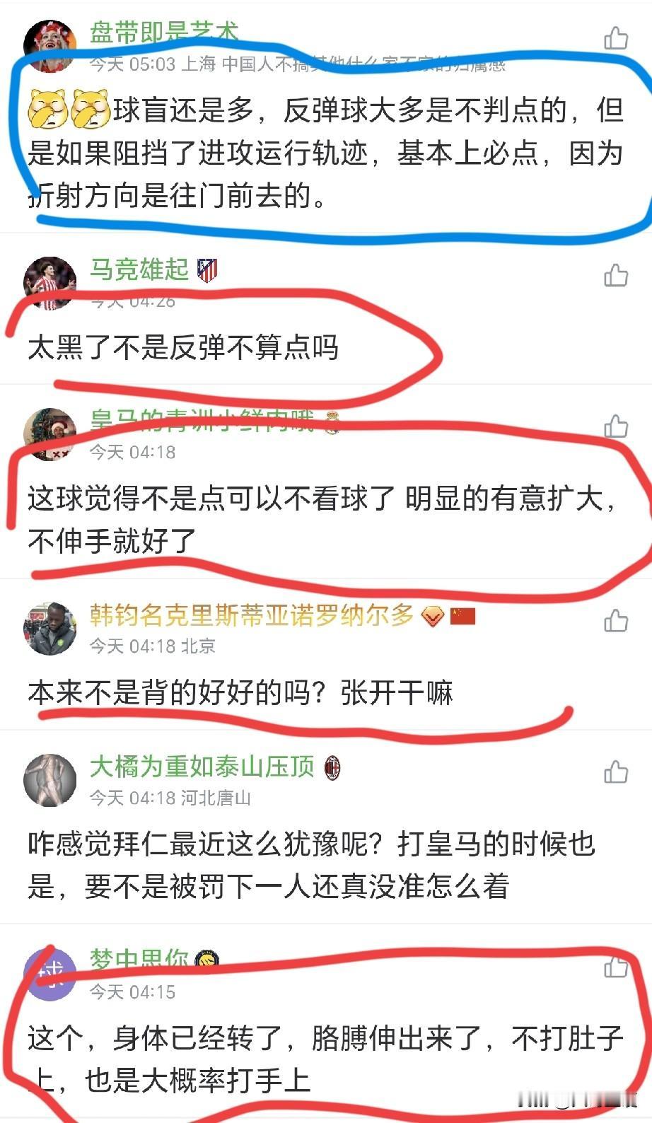 欧冠半决赛主裁判,给中超裁判隔空上了一课!拜仁后卫戴维斯这个手球,人家是怎么吹罚的[震惊] 北京时间4月29日凌晨,25/26赛季欧洲冠军联赛半决赛首回合,巴黎圣日耳曼主场迎战拜仁慕尼黑的比赛正式打响[加油] 比赛进行到上半时伤停补时阶段,拜仁慕尼黑后卫阿方索-戴维斯手球送点,登贝莱点射破门,巴黎圣日耳曼3:2领先拜仁慕尼黑⚽️ 慢动作回放显示,阿方索-戴维斯这个手球,是打在躯干后碰到手,主裁判看完VAR,判罚点球⚽️ 这一下子!好像把中超球迷看不会了,因为在中超赛场上出现这种手球,大概率是不会给点球的,此前主裁判王竞面对类似的手球,就给出了不是点球的吹罚,其实远不止王竞一个主裁判这么干过[泪奔] 事实上,马宁在执法亚冠联赛中,对于类似这种手球,也给出了点球判罚,这也可以看出,马宁对判罚规则的准确把握[赞] 不论是阿方索的这个点球判罚,还是马宁在亚冠联赛上的点球吹罚,都可以说是裁判员教科书式的吹罚,其他中超裁判直接照抄作业即可,可以避免出现很多误判,也省得把国内球迷也弄的一头雾水,规则不断修改,不少球迷现在连个手球点球都看不懂了[叹气]