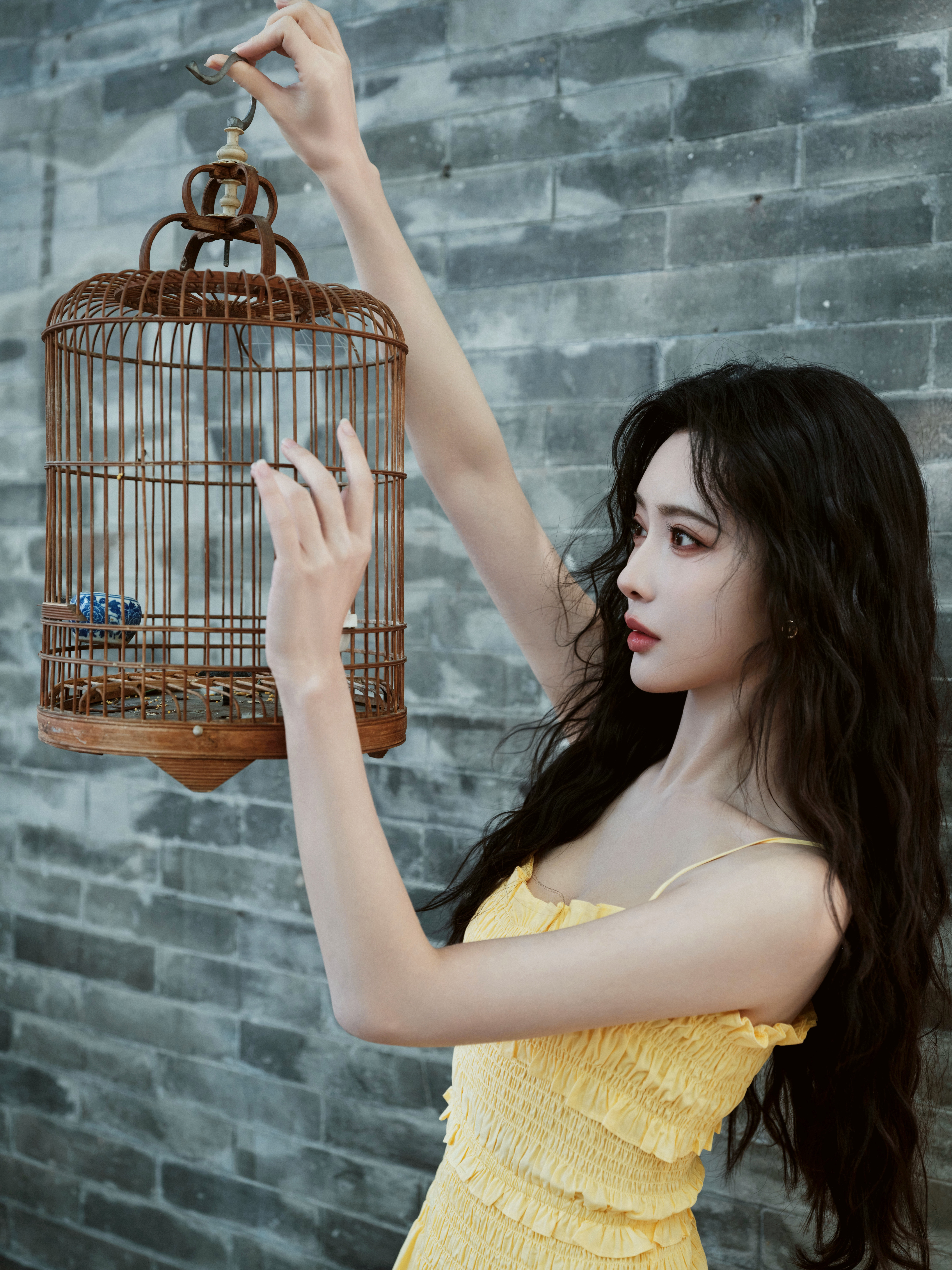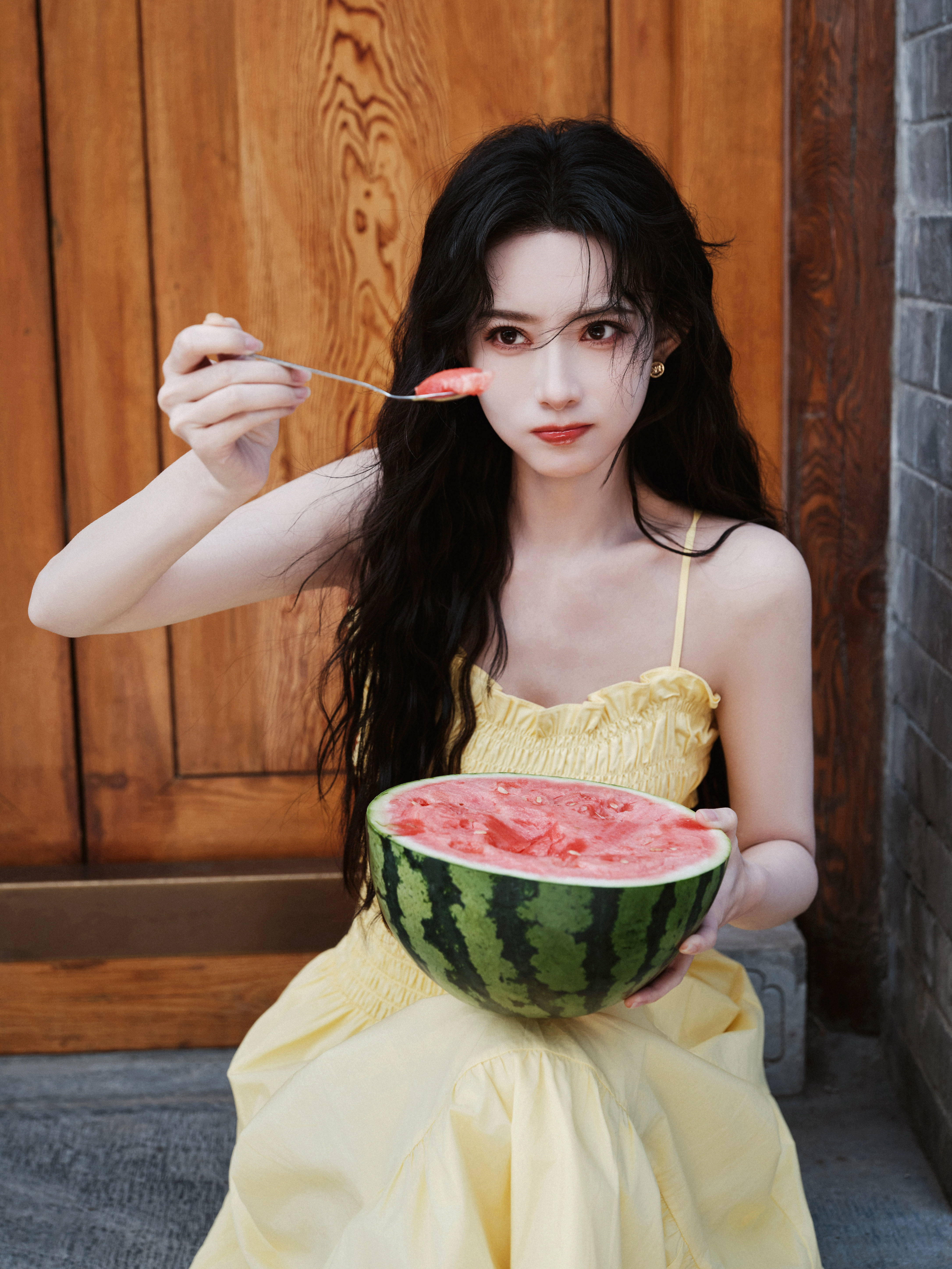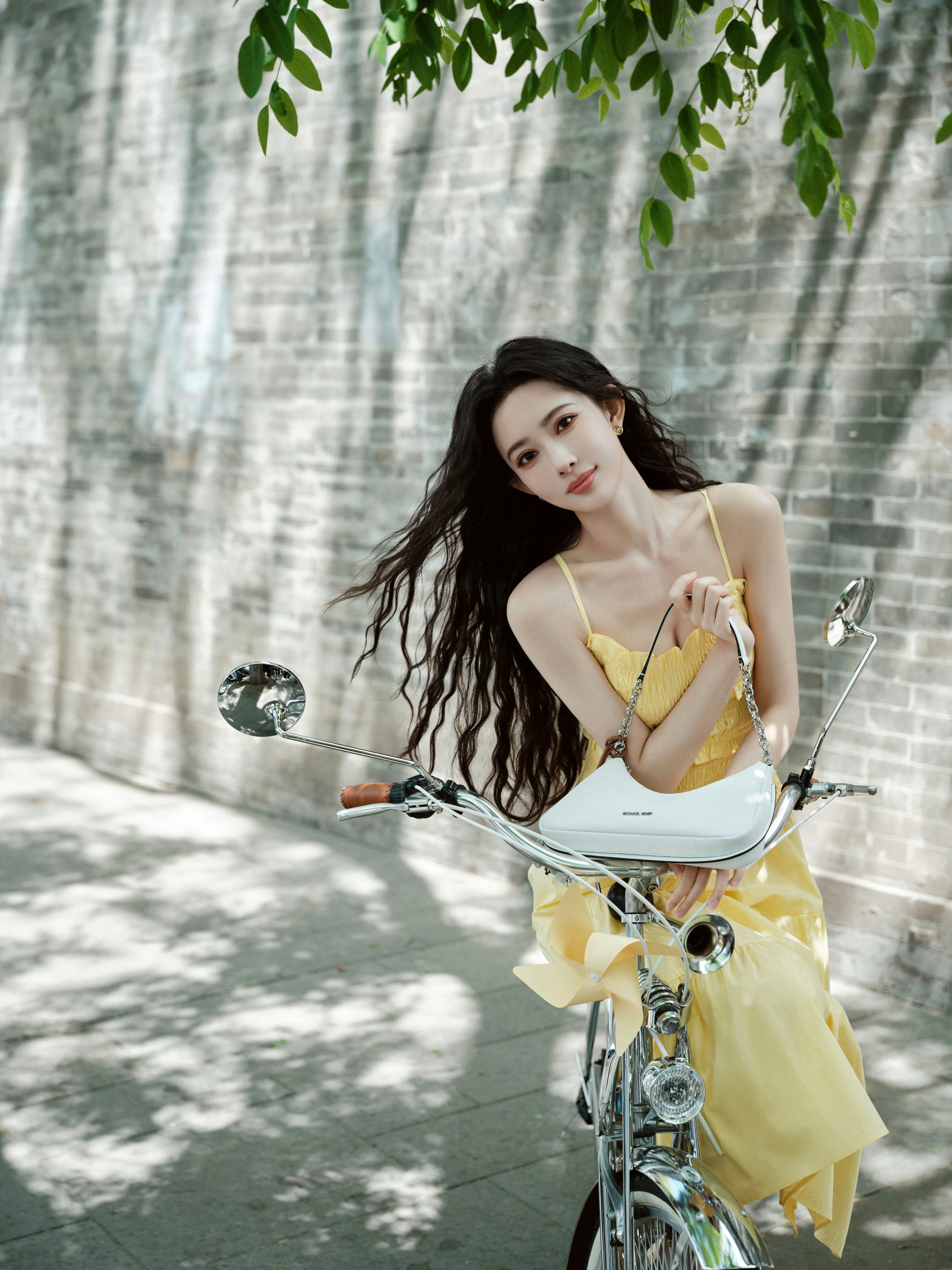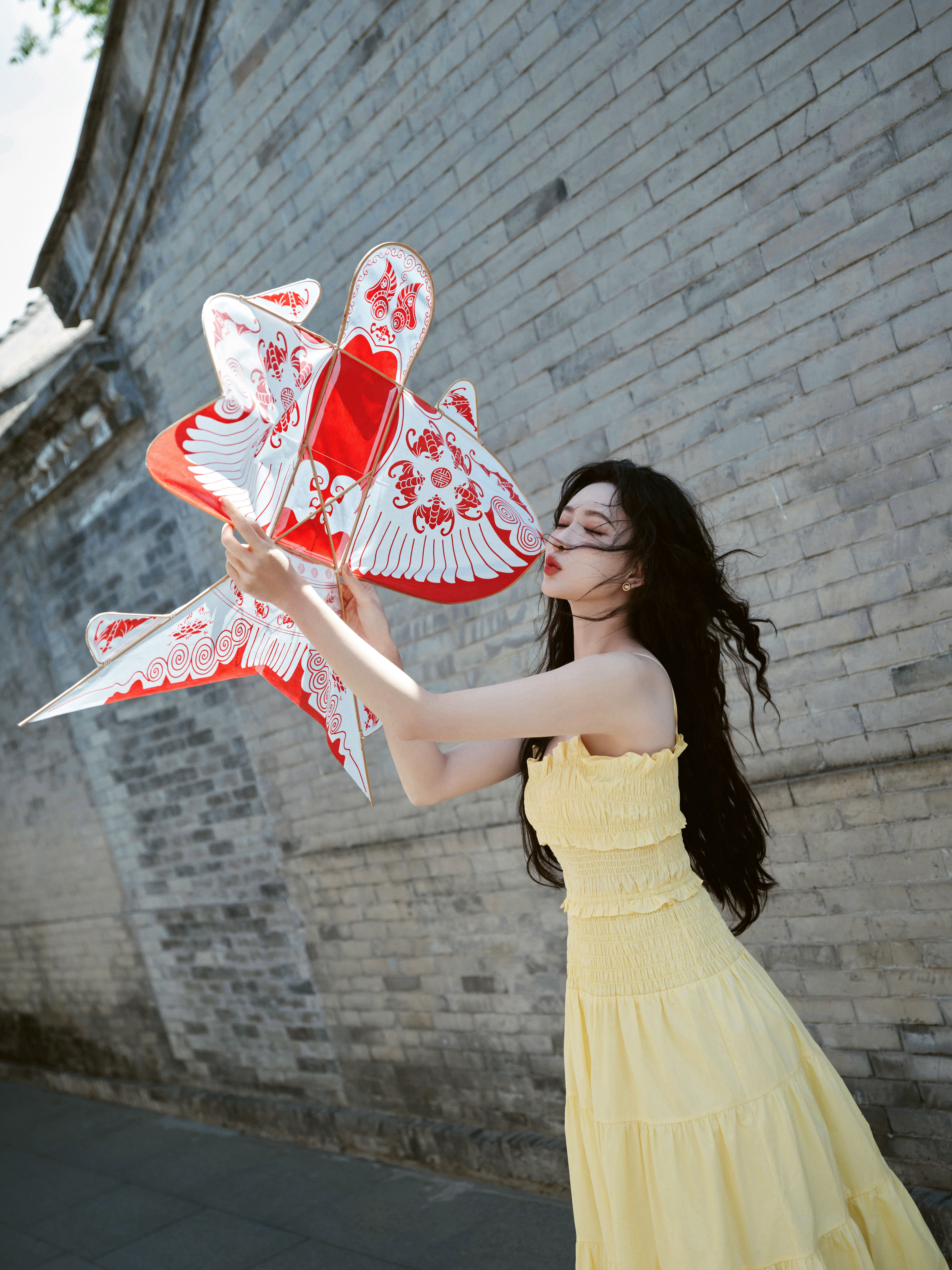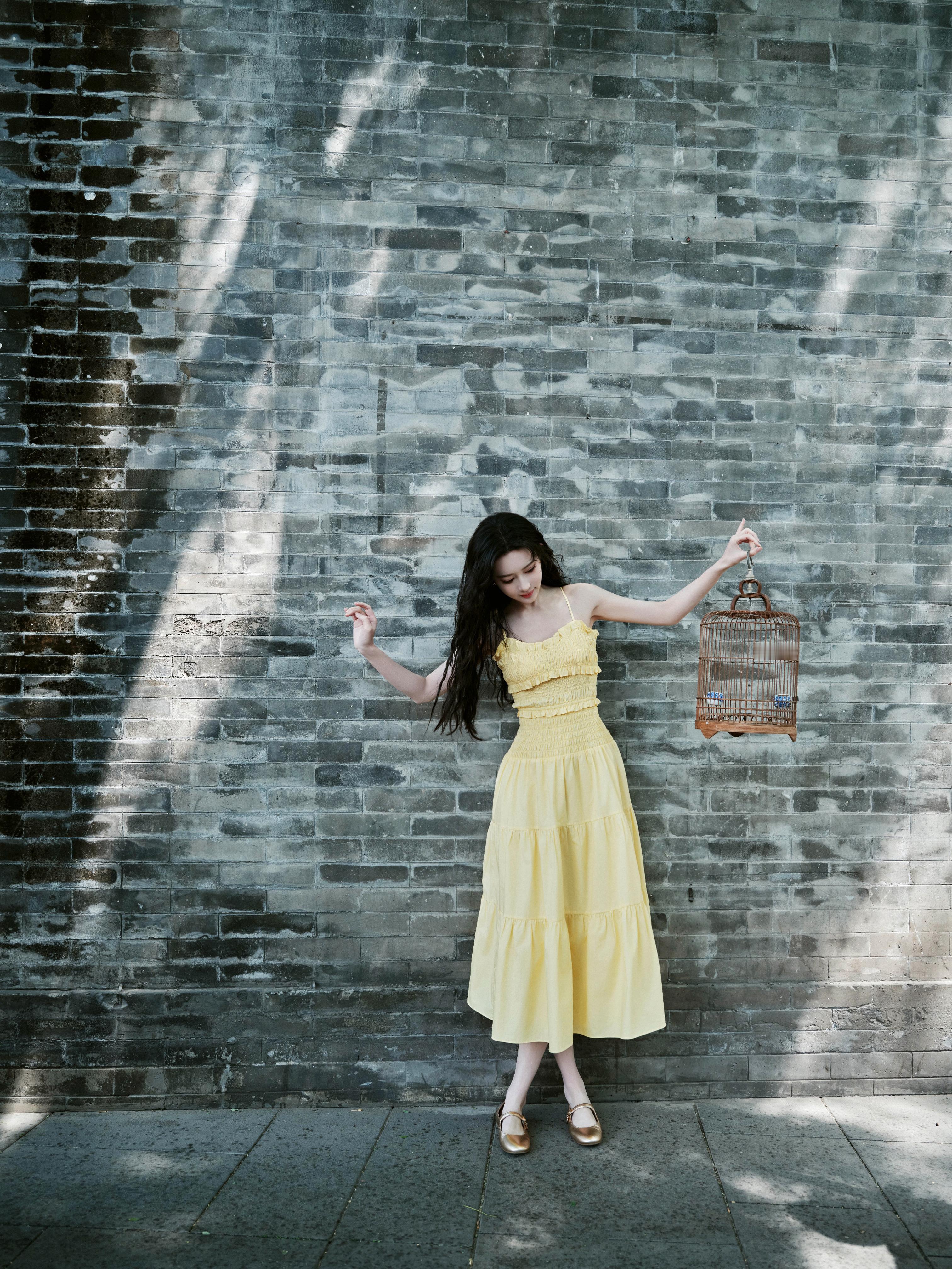 穿着淡黄色长裙漫步在胡同,仿佛回到了记忆中的夏天,是一种清清爽爽的美丽~🍉