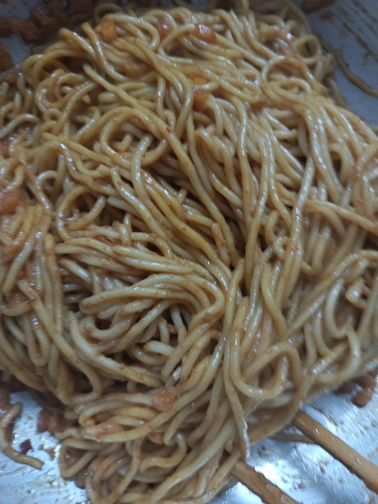 早餐做的面,尽管忘了放辣椒酱,但味道还是挺好的,几个人全部吃完。