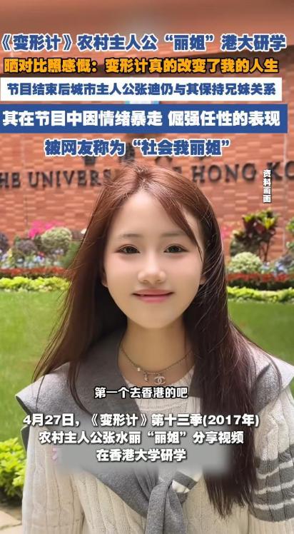 当年《变形计》里那个哭闹的“丽姐”,如今在香港大学研学。她自己坦言:是那次交换,彻底改写了她的人生轨迹。 (主要信源:原文登载于羊城晚报 羊城派综合 2026-04-28 19:28 关于“《变形计》“丽姐”张水丽9年后在港大研学,“节目改变了我的人生””的报道) “变形计真的改变了我的人生。”这是4月27日张丽在社交平台的配文,她正站在香港大学的校园里,笑容明亮。 许多人还记得另一个她,2017年,在湖南湘西的山村里,那个因为哥哥要去城市交换而蹲在地上嚎啕大哭、被网友称作“社会我丽姐”的九岁小女孩。 时间过去这些年,从湘西山村到港大研学课堂,从当年那个用眼泪和倔强保护自己的留守儿童,到现在分享留学日常的准大学生,张水丽的人生轨迹画出了一道许多人未曾料想的弧线。 当年节目里的“丽姐”之所以让人印象深刻,恰恰因为她打破了观众对农村孩子“乖巧懂事”的刻板想象。 面对突如其来的陌生哥哥陈新颖,她的反应是逃跑、大哭和拒绝沟通,这种真实的抵触情绪反而让她显得格外鲜活。 观众在笑声中渐渐理解,这个浑身是刺的小女孩,其实是在用自己唯一懂得的方式,守护着与哥哥张水富相依为命的微小世界。 父母离异,父亲外出打工,母亲不得相见,哥哥是她全部的安全感来源。 当这个来源也要暂时离开时,她的世界仿佛塌了一角,那些“暴走”行为,不过是一个缺乏安全感的孩子最本能的防御。 但这个故事最动人的部分,并非停留在当年的戏剧性冲突里,而在于节目结束后漫长时光中的持续温暖。 在所有参与节目的城市主人公中,张迪是为数不多真正走进并留在张水丽生命里的那个人。 他并没有在镜头关闭后转身离开,而是以“哥哥”的身份,实实在在地介入了她的成长。 这种介入并非简单的物质资助,而是一种更深层次的陪伴与引领。 他会每年利用寒暑假,接水丽和她的亲哥哥到城市生活,带他们体验不同的世界;他会记得她的生日,甚至扮成她喜欢的卡通形象逗她开心。 他会在直播中为当年那个“不懂事”的小女孩澄清,解释那些行为背后是一个孩子的不安。 更为重要的是,他成为了水丽看世界的一扇窗,带她上北京的外教课,为她的学校捐赠物资,用实际行动拓宽着她人生的边界。 今年,张迪做出了一个更重大的决定:正式领养张水丽,将她的户口迁入自家,并计划送她出国深造。 这个决定早已超越了节目设定的“交换”范畴,它意味着一份没有血缘却坚实如山的亲情承诺,意味着一个女孩的人生轨迹因此获得了根本性的转向。 从“变形计”的短暂交集,到如今法律意义上的家人,这段关系经历了时间的淬炼,显得尤为珍贵。 它告诉我们,真正的改变往往发生在聚光灯之外,在那些日复一日的陪伴、一次次的托举和年复一年的守护之中。 如今站在香港大学的张水丽,身上早已看不到当年那个慌乱无助的“丽姐”影子。 她从容地面对镜头,分享自己的见闻,眉眼间是开阔世界赋予的自信。 不久前,她公开了自己被外国大学录取的消息,这意味着她的脚步还将迈向更远的地方。 她的蜕变,固然有节目带来的初始契机,但更关键的,是后续那份持续的、真诚的关爱为她铺设了道路。 张迪的坚持,让她在失去一部分安全感后,重建了更稳固的支撑;让她在见识过山外的世界后,萌生了走出去的勇气。 张水丽的故事,像是一则关于“后续”的珍贵样本。 它让我们看到,一档节目可以是一个起点,但真正扭转人生的力量,来自节目结束后那些具体的、不放弃的爱与责任。 那些曾为她揪心的观众,如今可以感到欣慰,因为那个爱哭的小女孩没有被遗忘在时间的角落,而是被好好地接住了,并且正朝着光明的方向走去。 她的经历也在提示我们,对留守儿童的关注,不应止于一场短暂的交换或一时的感动,更需要社会网络中有更多“张迪”这样的人。 愿意付出长期的努力,用耐心和爱去修补那些残缺的安全感,为那些聪明的、有潜力的孩子,架起一座通往更广阔天地的桥梁。 从湘西到香港,从童年到青年,张水丽的路径无法被简单复制,但其中蕴含的朴素道理却具有普遍意义:一个人的转变,尤其是孩子的成长,往往取决于他生命中是否出现了那个愿意持续给予光亮的人。 张水丽是幸运的,她遇到了。 而这份幸运,或许能提醒更多人,去成为别人生命中的那束光,哪怕光芒微弱,只要足够持久,便足以照亮一段前程。
