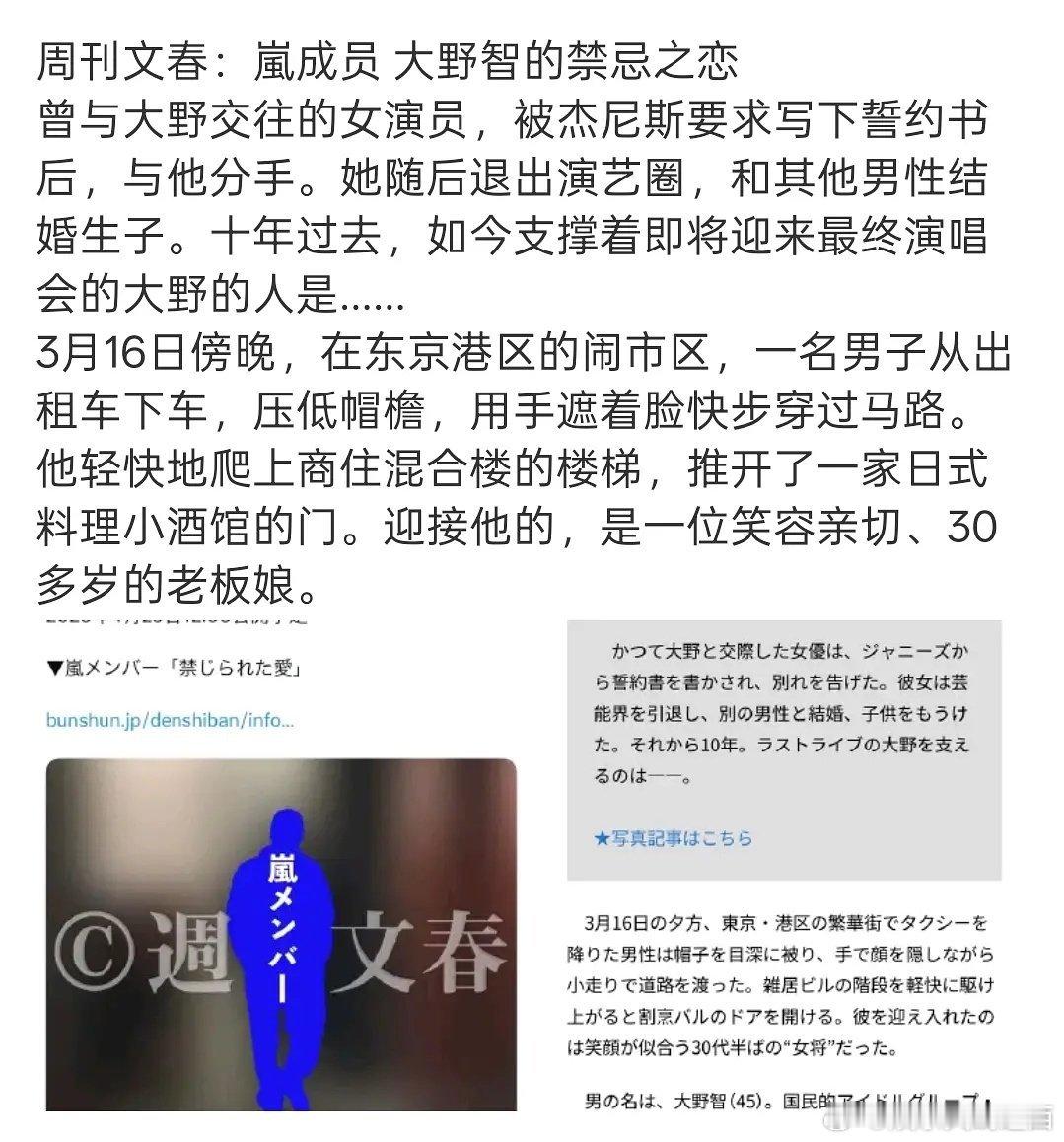 文春要爆的国民男团禁忌之恋是大野智😑😑昨天看到说禁忌之恋,还以为大野智和松本润谈了。就这?