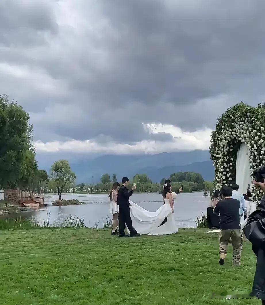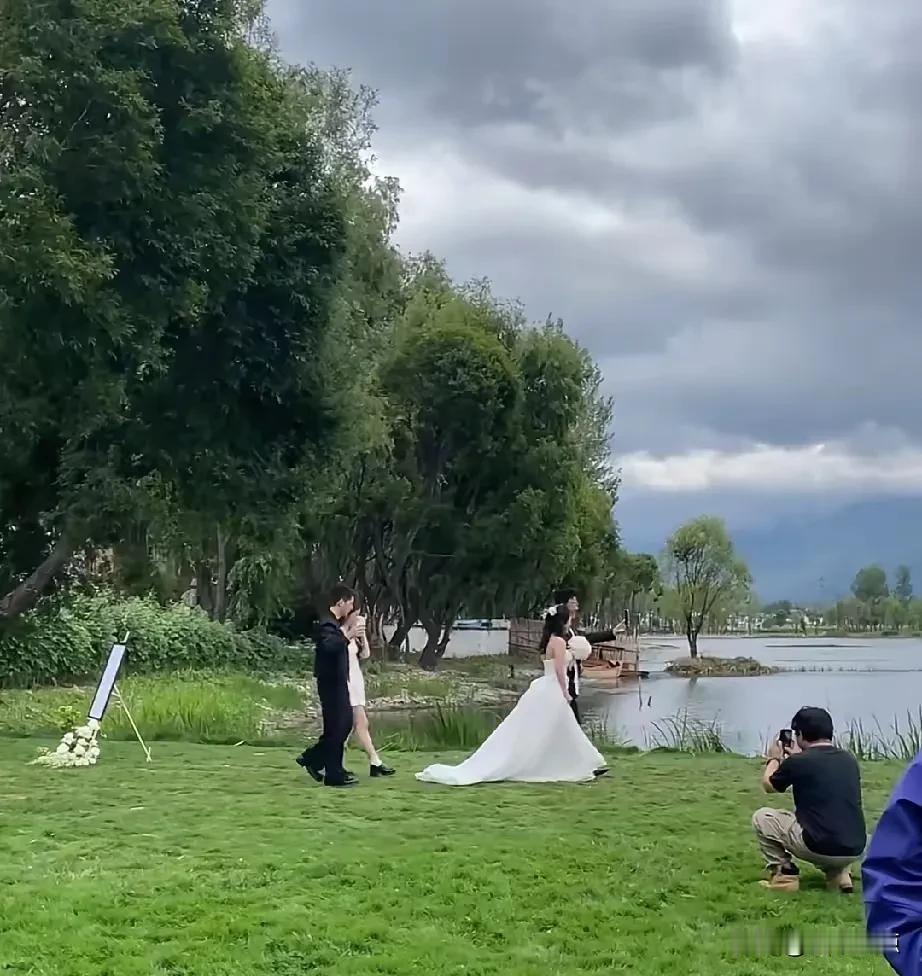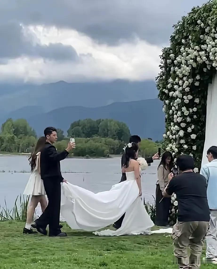 郭涛58岁补办婚礼,李燃41岁穿婚纱美翻了,小石头比爸还高半头却低头帮妈提裙摆。 今天刷到大理偶遇郭涛和李燃补办婚礼的视频,没演戏也没台本,俩人就在那儿站着等上台,李燃穿婚纱,郭涛穿西装,手里都攥着手机录着。小石头和妹妹当花童,不是小时候那种被哄着站台边的小孩了,哥哥自己举着手机跟拍,妹妹笑着把花瓣往哥哥口袋里塞。真挺自然的。 他们2006年结婚,那会儿郭涛41,李燃才24,差17岁。2007年生小石头,一晃十九年过去,小石头都快一米八五了,站在爸旁边真比他还高半个头。可上台那会儿,他弯腰帮妈提裙摆的动作一点没犹豫,手稳得很。 今年三月还在苏州拍旗袍照,李燃穿一身墨绿绣花旗袍,郭涛就站在边上一直笑,不说话光看。那时候像在悄悄准备什么,四月就真把婚礼办了。不是为了上热搜,也不是补遗憾,就是俩人觉得,该有个正经仪式再走一遍。 早些年小石头上过《爸爸去哪儿》,那时候才七八岁,镜头一来就绷着脸,大人说什么就做什么。2019年亲戚结婚他还被拉去当花童,全程黑脸,网友都说“这孩子不情愿”。现在不说了,他拿手机录妈走向台前的背影,镜头一直没晃,也没切,录满了整个过程。 李燃今年41,穿婚纱没刻意瘦、没P图,就是笑着牵郭涛的手慢慢走。郭涛一边走一边看她,手有点抖,但没松开。妹妹跟在后面,没老老实实撒花瓣,撒一半又偷偷塞哥哥口袋里几片,俩人背影看着都挺放松的。 网上有人扒出他们早年采访,郭涛说求婚时李燃家人挺犹豫,担心他太忙顾不上家。后来小石头出生,他推掉不少工作带娃,纪录片里全是糊脸的奶瓶和半夜换尿布的剪影。这些年没发过多少秀恩爱的动态,但每次提起李燃,他都叫“我爱人”。 婚礼现场没人喊口号,也没放多大声的音乐。郭涛拍完视频把手机塞兜里,小石头顺手接过妈另一边的裙摆,三个人并排站着,等风把头纱吹起来一点。风来了,李燃抬手按了按,郭涛伸手帮她扶正,小石头没动,就看着,嘴角扬了一下。 照片里他们站成一排,影子叠在一起,挺长的。