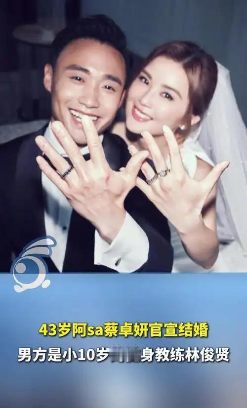 43 岁蔡卓妍阿 Sa,突然高调官宣结婚了 一句 “恭喜我嫁你,恭喜你娶我” 的甜蜜文案,刚发布就瞬间刷屏全网,短短一小时点赞量直接冲破百万,相关话题接连霸占各大平台热搜榜首,成了 2026 年最受关注的文娱喜讯。 2026年4月28日中午12点,华语乐坛经典女子组合Twins成员蔡卓妍(阿Sa)在个人社交平台正式发布结婚喜讯,一句“恭喜我嫁你,恭喜你娶我,以后请多多指教,多谢大家的祝福”,简单直白却满溢双向奔赴的甜蜜,瞬间引爆全网热议,相关话题接连登上各大平台热搜榜首。 这条动态发布短短一小时,点赞量便突破百万,转发与评论量节节攀升,成为当日全网关注度最高的文娱事件。 官宣动态中,阿Sa同步晒出了两张新婚照片,一张是两人交握的双手特写,素圈婚戒与精致钻戒在光影下熠熠生辉,另一张则是两人的同框婚纱照。 照片里的阿Sa身着简约大气的白色婚纱,头纱轻垂,眉眼间尽是藏不住的笑意,身旁的新郎一身笔挺黑色西装,两人相偎相依,一同对着镜头举起双手展示婚戒,眼底的幸福与欢喜几乎要溢出屏幕。 根据红星新闻、广州日报等权威媒体报道,阿Sa的新婚丈夫名为林俊贤,是一名专业健身教练,同时也是香港中环高端健身工作室的创始人。 公开资料显示,蔡卓妍1982年11月出生于加拿大温哥华,2026年实岁43岁,林俊贤比她小10岁,今年33岁。 两人的缘分始于共同好友关智斌的介绍,最初阿Sa只是林俊贤的健身学员,在日复一日的相处中,两人逐渐被彼此的性格吸引,从师徒关系慢慢发展为恋人。 2025年七夕节,两人被拍到一同现身林家谦的演唱会现场,这也是他们首次被拍到公开同框,恋情传闻就此传开。 同年11月阿Sa的生日派对上,林俊贤低调现身并站在合影的核心位置,恋情状态已然明朗化,只是彼时阿Sa并未正面回应相关传闻。 2026年1月,Twins组合现身香港尖沙咀活动现场,阿Sa在接受媒体采访时,被问及与林俊贤的绯闻,大方坦然地回应“其实可以删除绯闻两个字”,正式向外界公开了这段恋情。 彼时她坦言,两人的感情状态十分稳定,当下的生活过得开心又安稳,没有太多复杂的想法,只珍惜眼前的幸福。 仅仅两个月后,阿Sa便向媒体透露,自己已经带林俊贤见过家长,母亲对这个男生的评价是“出奇地OK”,十分认可两人的交往,而此时两人也已经开始了同居生活,提前进入了试婚阶段,相处模式自然又融洽。 从1月正式公开认爱,到4月官宣结婚,短短三个多月的时间,阿Sa便做出了人生中最重要的决定。这份看似“火速”的决定,背后却是她历经千帆后,对感情最清醒的判断与最坚定的选择。 作为陪伴了几代人青春的女艺人,阿Sa自2000年签约英皇娱乐,与钟欣潼组成Twins组合出道以来,演艺之路走得顺遂又亮眼。 2001年推出首张同名EP便迅速走红,2003年凭借一首《下一站天后》火遍华语乐坛,成为无数人青春里的经典旋律,此后无论是音乐专辑还是影视创作,她都交出了亮眼的成绩单,成为华语娱乐圈里长红二十余年的女艺人。 相较于顺风顺水的事业,阿Sa的感情之路却走得格外坎坷,兜兜转转二十余年,历经了几段刻骨铭心的感情,却始终没能迎来圆满的结局,也让无数粉丝为她意难平。 她的第一段婚姻,是与歌手郑中基的四年隐婚。2004年,两人因合作电影《追击8月15》相识相恋,2006年1月,24岁的阿Sa与郑中基在美国洛杉矶秘密注册结婚。 为了不影响双方的事业,这段婚姻被小心翼翼地隐藏了四年,期间阿Sa甚至曾为了躲避狗仔,蜷缩在汽车后备箱里出行。 直到2010年3月,两人才在香港召开新闻发布会,首度公开了结婚的事实,同时也宣布了离婚的决定。发布会上,两人双双落泪,坦言分开只因性格不合,全程否认第三者介入,以最体面的方式,结束了这段长达四年的婚姻。 离婚仅三个月后,阿Sa便迎来了与师弟陈伟霆的恋情,这段相差三岁的姐弟恋,在当时引发了全网热议。 彼时的陈伟霆还是娱乐圈的新人,而阿Sa已经是红遍两岸三地的顶流女艺人,外界关于“女强男弱”的质疑声从未停止,但两人却始终坚定地站在彼此身边。 阿Sa亲自带着陈伟霆出席各类活动,为他拓展人脉,在他事业遇到瓶颈时耐心开导,全力支持他的追梦之路。 2014年,陈伟霆凭借《古剑奇谭》在内地爆红,事业重心逐渐转移到内地,两人开始长期聚少离多,最终在2015年9月,双方同步发文官宣分手,以一句“感谢彼此的陪伴,祝未来一切安好”,体面结束了这段长达五年的感情。 二十余年的娱乐圈沉浮,历经了感情里的聚散离合,阿Sa始终保持着对爱情的真诚与勇敢,从来没有因为受过伤就封闭自己的内心,也从来没有因为年龄与外界的声音,就将就自己的人生。