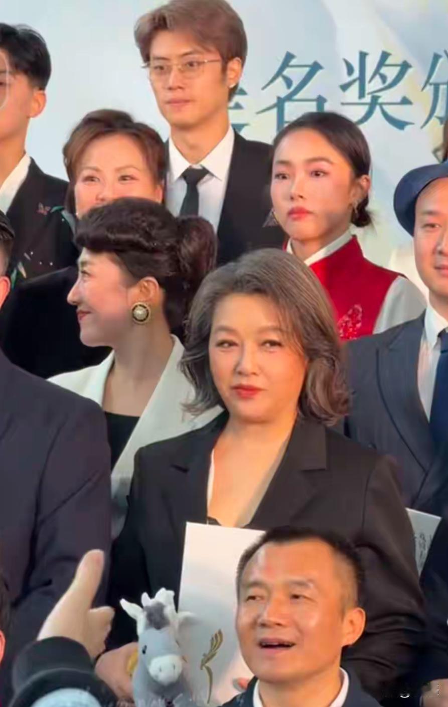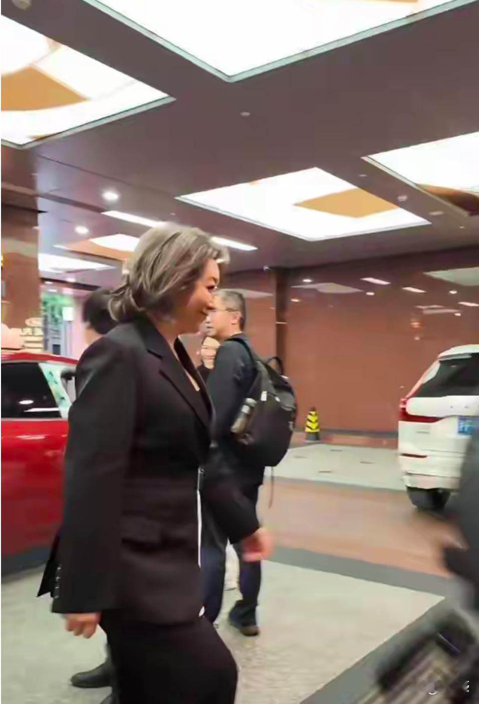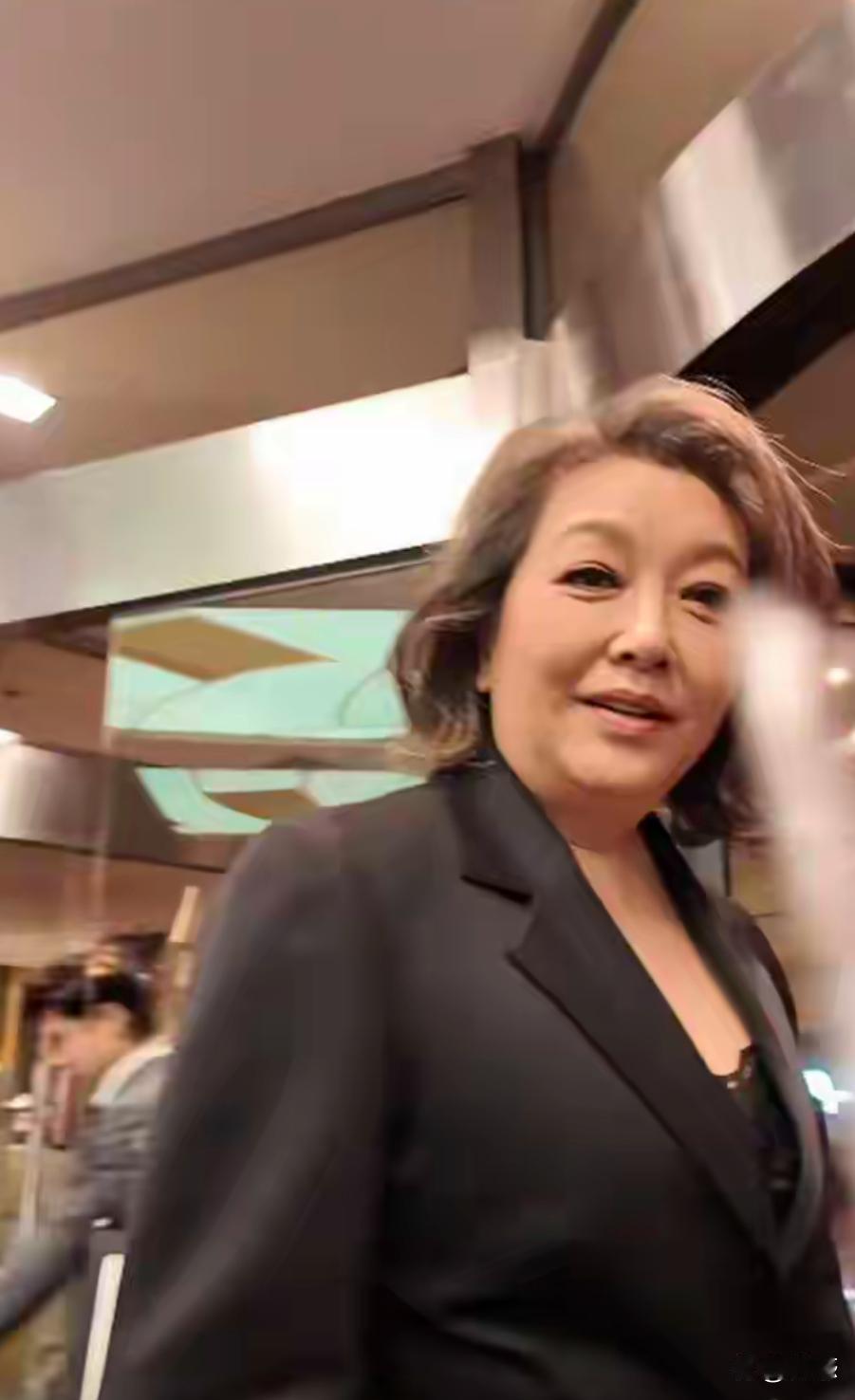58岁江珊露面,150斤身材穿西装,确实胖了不少,但脸显年轻几乎没皱纹。