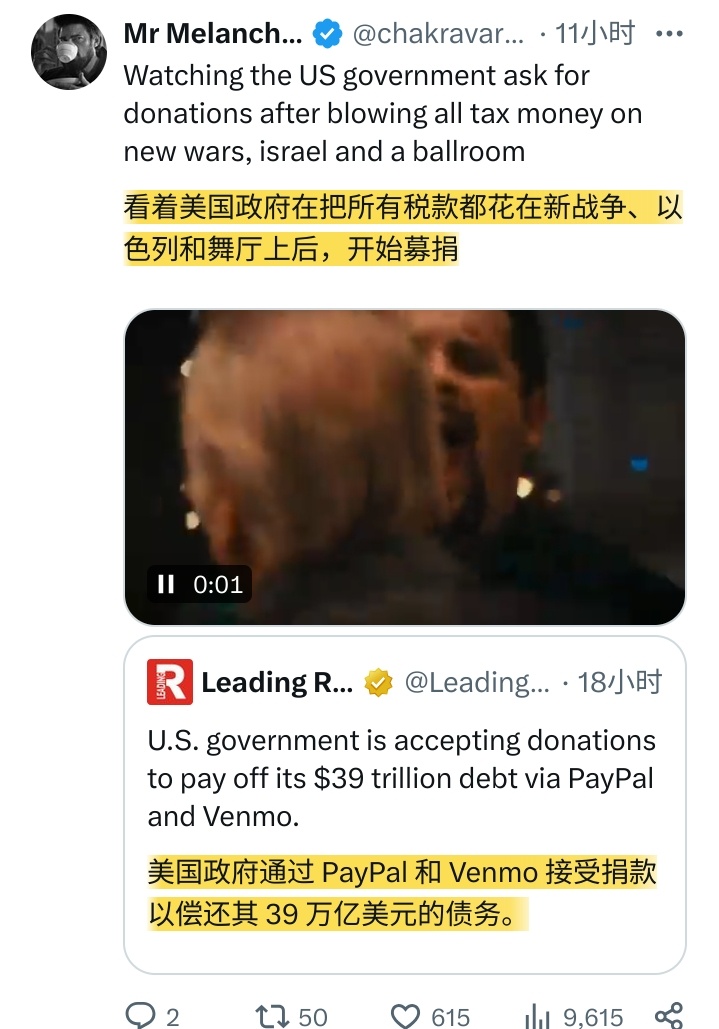 川普一边给富豪减税,一边在南美、中东打仗,一边竟然募捐想让别人帮他还美国国债!