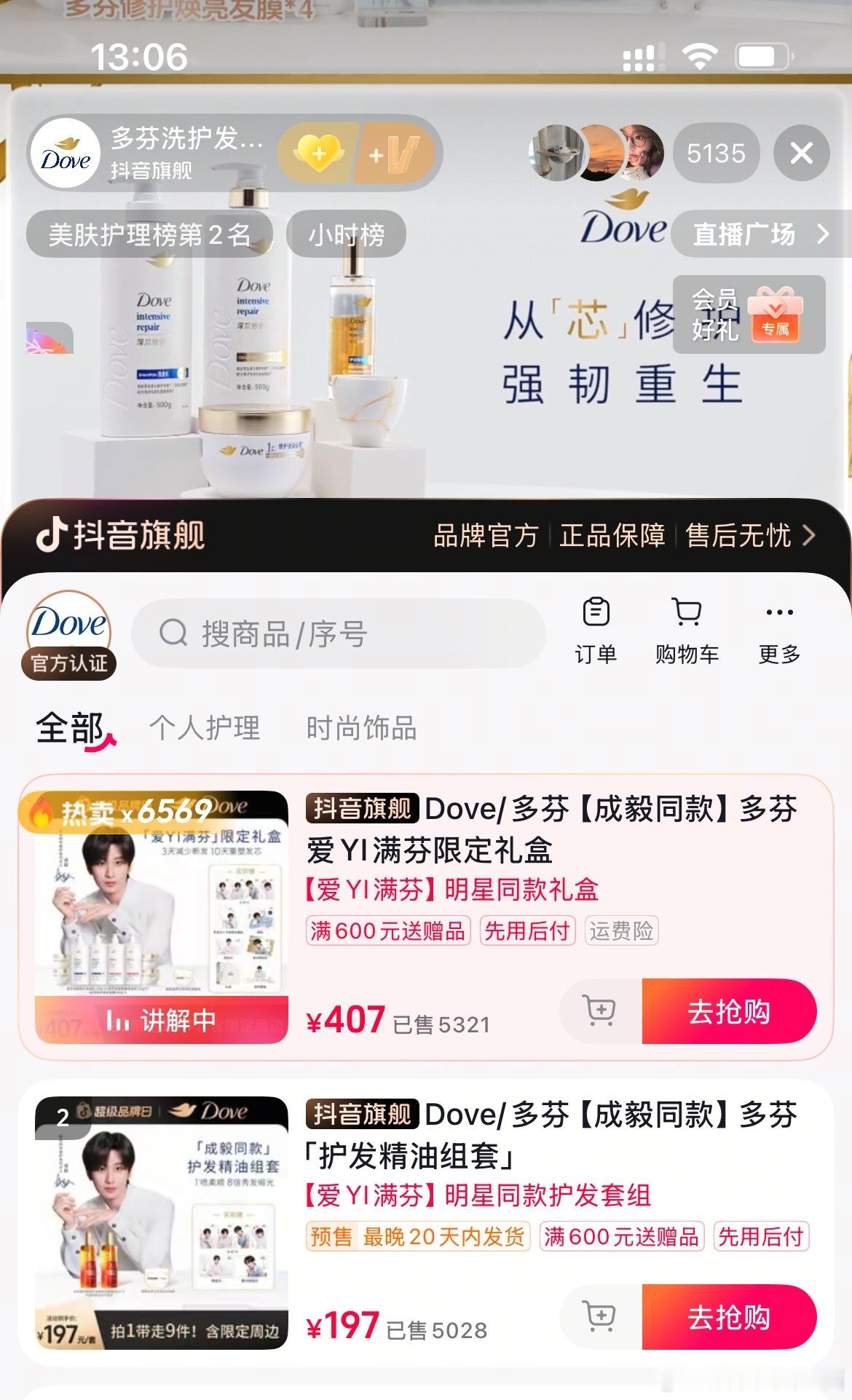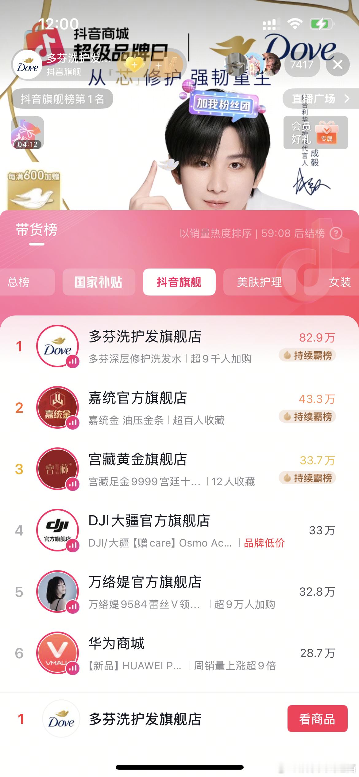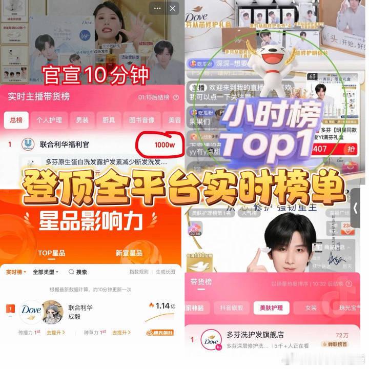 不愧是集团首位联合利华美护发代言人,成毅今天官宣🍑新单链秒切一万+,10分钟两万+,单链销售额保守估计700万+,并且两个小时不到给一日化巨头干成全款预售了……抖更是直接秒切售罄补货后单链麦了300万加,差不多就是直播间官宣后总销售额,合着直播间全是冲着成毅的礼盒去的啊,真牛批这个月从Gap到绽家到六福到杂志到多芬,ie是一路全部买爆,财顶当之无愧!补个图,官宣半个小时全平台登顶!成毅联合利华美护发代言人cy 从芯修护强韧重生成毅