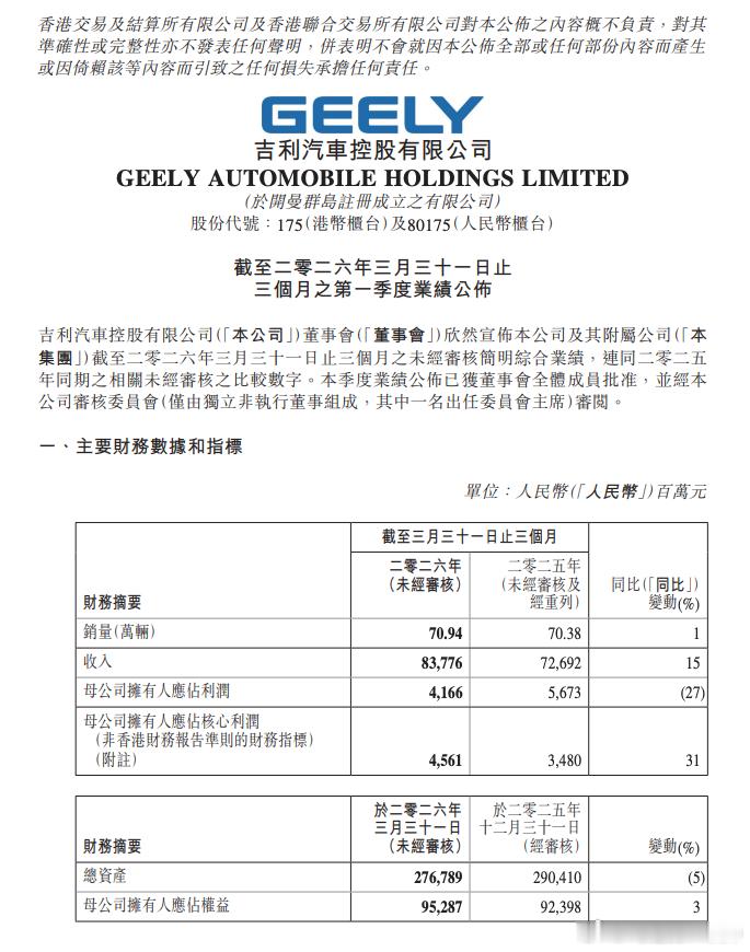 吉利财报来了,经营质量提升明显,利润增长比营收增长更快,盈利能力增强。净利下降可以说是不可抗力了,汇率影响导致的。