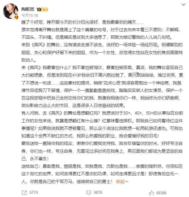 陶昕然资助女学生不考虑成绩 陶昕然浪姐淘汰后的长文,温柔又有力量!!这才是真正的乘风破浪,让我们看到了40+姐姐的格局真的好好!