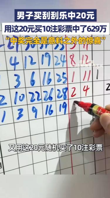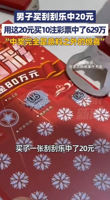 安徽芜湖,一男子随手买一张刮刮乐中20元,一时兴起用奖金买10注彩票,不曾想竟中得629万元一等奖。网友:这运气也太好了! 谁能想到,一张不起眼的刮刮乐,竟能成为通往百万财富的“敲门砖”? 4月27日,一则来自安徽芜湖的中奖新闻刷爆全网,一位普通男子凭借一场“无心插柳”的购彩经历,从20元小奖一路逆袭,斩获629万元一等奖,这份双重惊喜,让无数网友直呼“现实比剧本还离谱”。 据媒体报道,这位幸运儿是安徽芜湖当地的一名普通市民,平日里购彩十分随性,从不盲目投入,也没有固定的投注习惯,每次路过彩票站,偶尔会买上一两张刮刮乐或几注彩票,纯粹是图个乐子,从未想过自己会成为百万大奖的得主。 事发当天,他像往常一样路过家附近的彩票站,一时兴起走进店里,挑选了一张20元面值的刮刮乐。 刮奖的过程十分轻松,他一边和店主闲聊,一边慢慢刮开涂层,没想到指尖划过之处,竟然出现了中奖20元的字样。 “当时就是觉得挺开心的,毕竟买刮刮乐大多时候都是谢谢参与,中20元也算小惊喜了。” 事后男子回忆道。 按照常理,很多人中了小奖后,要么直接兑取现金,要么随手花掉,但这位男子却做出了一个偶然的决定——他没有兑取这20元奖金,而是跟店主说,用这20元奖金随机机选10注大乐透。 “就是一时兴起,想着反正也是中奖的钱,再碰一碰运气,就算没中也不亏,完全没抱任何希望。” 就这样,10注随机生成的彩票,成了他意外暴富的关键。 开奖结果公布后,男子起初并没有在意,毕竟他购彩向来佛系,很少主动查询开奖信息。 直到几天后,他再次路过那家彩票站,店主一眼认出他,笑着提醒他“你上次买的彩票中大奖了,赶紧去核对一下”,他才半信半疑地拿出手机查询。 当屏幕上的开奖号码与自己手中的彩票号码一一对应时,男子整个人都懵了。 他反复核对了好几遍,确认自己中了当期大乐透一等奖,奖金高达629万元。 “当时脑子一片空白,完全不敢相信,就觉得跟做梦一样,这629万来得太突然了,完全是意料之外的惊喜。” 男子难掩激动,语气里满是难以置信。 据悉,男子中中的629万元大奖,是当期大乐透的一等奖之一,彩票出自芜湖当地的一家体彩投注站,目前该奖金已进入兑奖流程。 根据《彩票管理条例》第二十五条规定,彩票中奖者应当自开奖之日起60个自然日内,持中奖彩票到指定地点兑奖,需出示本人身份证件,逾期不兑奖将视为弃奖,而奖金将以人民币现金或现金支票形式一次性兑付。 随着这则中奖新闻的走红,网友们瞬间炸开了锅,评论区里满是羡慕和热议。 有网友调侃:“这才是真正的‘躺赢’,20元撬动629万,比被雷劈的概率还低”; 也有网友表示:“太羡慕了,同样是买刮刮乐,我中过最多的就是5元,人和人的运气差距也太大了”。 2026年大乐透一等奖概率约为1/21425712(约2142万分之一),比一年被雷劈中的概率(1/150万)还小;就算每天买1注大乐透,理论上也要近5万年才能中一次头奖。 刮刮乐的返奖率虽稍高,约为60%,但中奖概率也仅在19.3%-20.5%之间,想要中大奖依然是小概率事件。 对于这笔突如其来的629万大奖,男子表示,目前已经有了初步的规划,会先妥善处理好奖金的兑取事宜,一部分用来改善家人的生活,一部分存起来以备不时之需,同时也会继续保持理性购彩的心态,不会因为中了大奖就盲目投入。 在这里也提醒大家,彩票的本质是公益娱乐,不是投资渠道,千万不要把彩票当作“翻身捷径”,更不要省吃俭用大额投注。 偶尔买一张图个乐子、盼个希望无可厚非,但一定要量力而行,保持理性。 毕竟,生活的底气从来不是来自彩票号码,而是自己的努力,那些刷屏的千万大奖,看看就好,平常心对待,才是最正确的态度。 信息来源: 大象新闻 2026年4月29日 《芜湖一男子买刮刮乐中20元,又用这20元买10注彩票中了629万,“中奖完全是意料之外的惊喜”》
