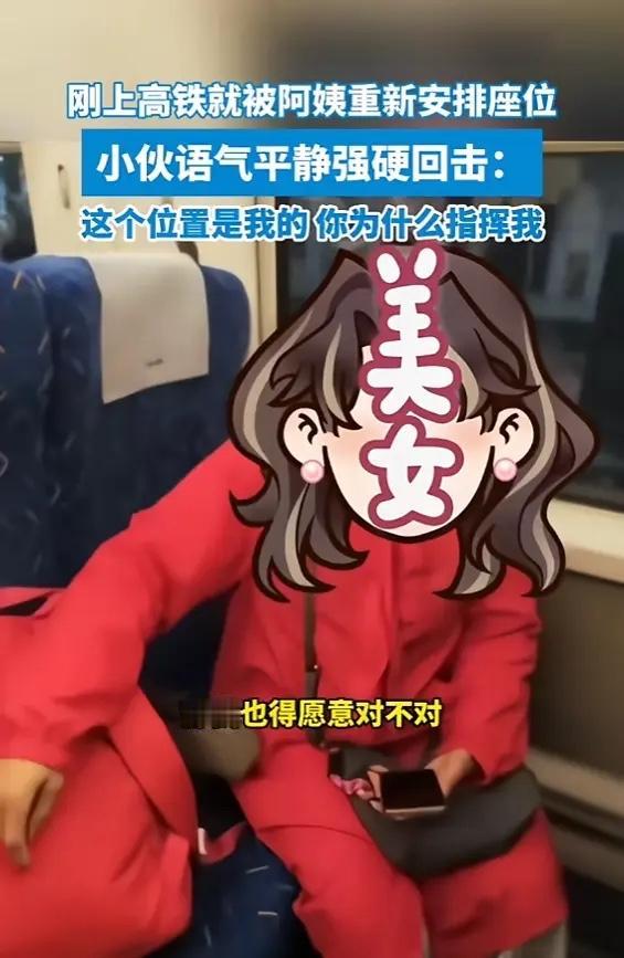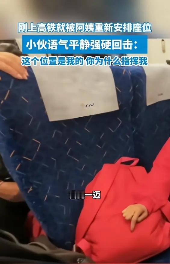 “干得漂亮!”4月26日,贵州高铁上发生一件大快人心的事。一位阿姨为了和同伴挨着坐,压根没好好商量,直接指使陌生小伙换座位。小伙淡定回怼:座位是我自己的,凭什么你来安排我?阿姨瞬间无言以对。不少网友感慨,这人也太没有分寸感了。 高铁刚平稳开动,小伙拿着车票找到自己座位,正要放下东西坐下。一旁穿红衣服的阿姨就径直开口,语气十分强硬:“你坐到那边去,靠窗那个位置。” 小伙当场愣住,看了看自己的车票,并没有生气争执。只是平静反问:大家都是买票坐车,你凭什么直接安排我换位置呢?换不换得看我愿不愿意。 简单一句话直接让阿姨哑口无言,尴尬之余她也不好再多纠缠,只好闷闷坐回自己原位。整件事前后不过几分钟,看完让人觉得特别舒服。 事情发到网上之后,网友议论纷纷。大家并不是小气不肯换座,而是反感这种理所当然的态度。客客气气开口求助,大多数人都会愿意顺手帮忙。一上来就命令式口吻,换谁心里都不会舒服。 日常坐高铁,想和亲友挨在一起的乘客特别多。情侣、家人、长辈,都希望坐得近一些。但车票都是个人花钱购买,靠窗、靠过道,每个人都有自己的需求与选择,本就不该被别人随意左右。 很多长辈习惯性觉得,年轻人就该无条件谦让自己。可现在大家更在意人与人之间平等相待,年纪从来都不是肆意要求别人让步的理由。公共场所相处,守住各自边界,才是最基本的礼貌。 我平时出门坐高铁,也碰到过类似情况。一对老年夫妻很有礼貌地请求换座,说话客气又周到,我当即就答应调换了。被人尊重,才愿意主动伸出援手。 说到底换座只是小事,考验的却是为人处世的修养。你待人有礼,别人才愿意体谅包容。若是把旁人的好心当成理所应当,久而久之,也就没人愿意帮忙了。 小小的高铁车厢里藏着人情世故,互不打扰、彼此尊重,遵守出行规矩,也留存一份温暖善意,旅途才会舒心自在。 各位读者你们怎么看?欢迎在评论区讨论。