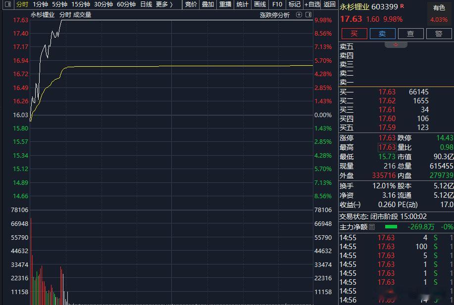 近期,锂矿概念股反复活跃。今日早盘,永杉锂业直线拉升至涨停板,激活了板块人气,永兴材料也在午盘前封死涨停。午后,锂矿概念股再度拉升,红星发展、融捷股份、西藏珠峰、大中矿业、雅化集团、江特电机等纷纷涨停,天华新能涨近19%。截至收盘,Wind锂矿指数大涨7.28%,通达信锂矿指数涨幅也超过5%。