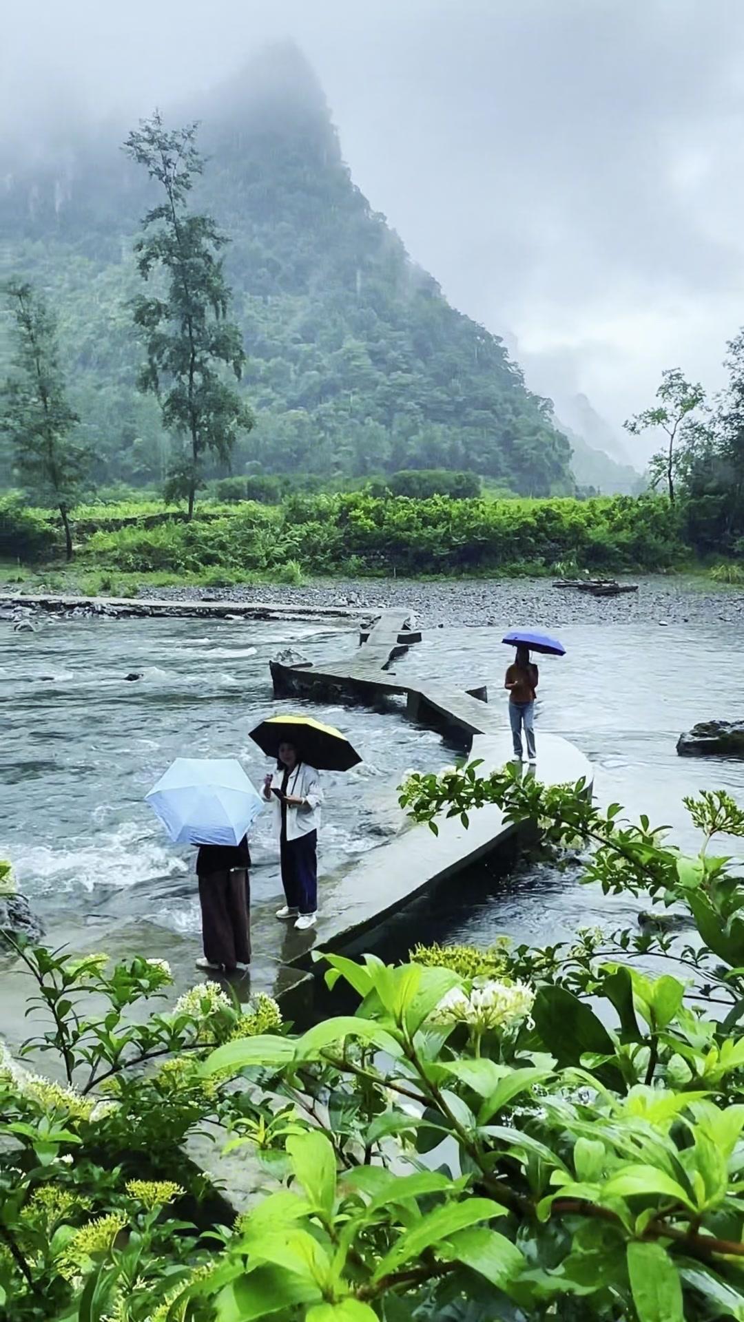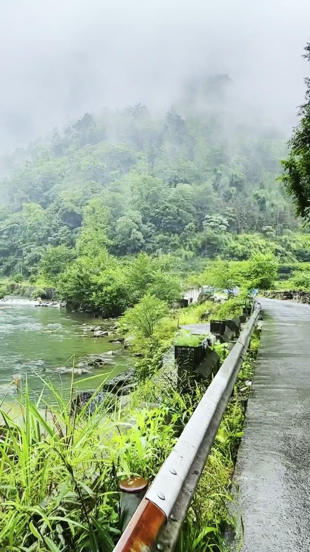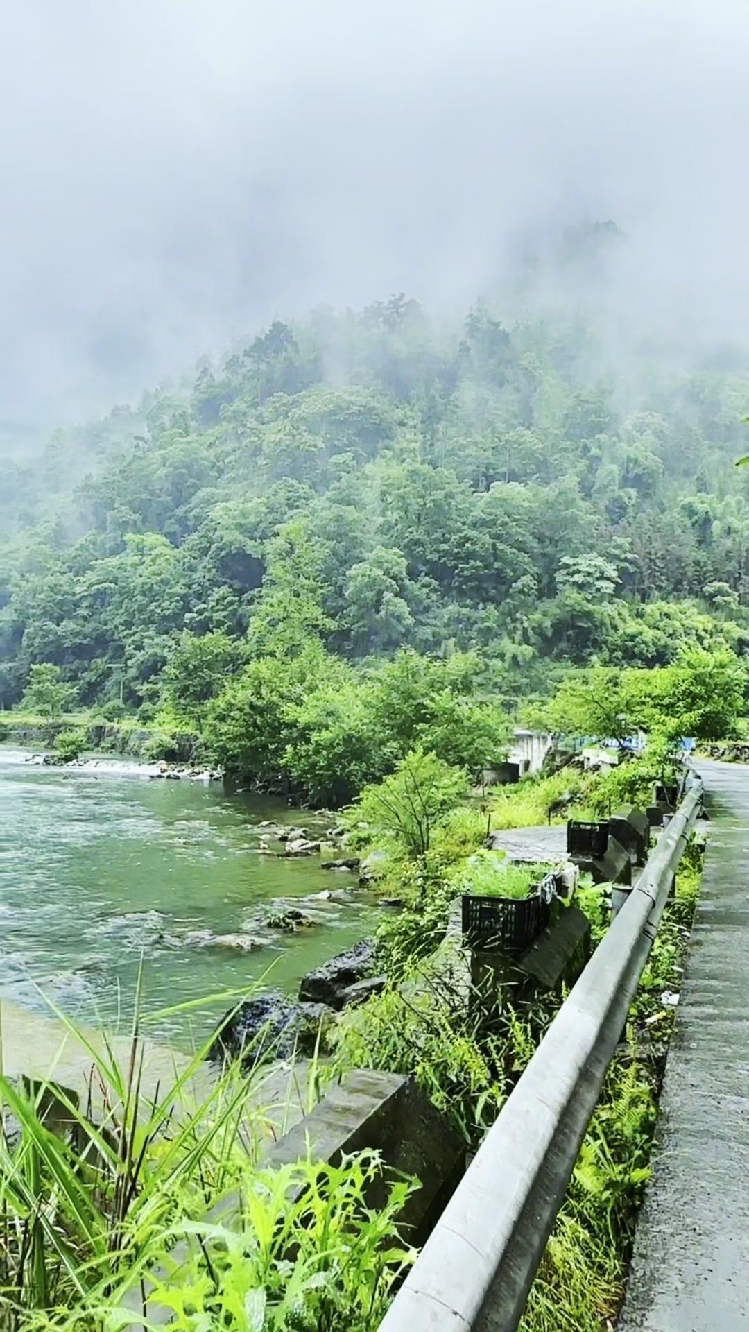 青石板路被雨水润得发亮,远山轮廓在烟雾中若隐若现。撑一把油纸伞,顺着水流慢慢走,木桥、红墙、青苔,每一处都像是时光在低语。 路过檐角挂着的红灯笼时,忽然明白那些没说出口的遗憾,或许早被这山川流水悄悄藏进岁月褶皱里。风穿竹林,雨打芭蕉,连呼吸都变得轻柔起来。