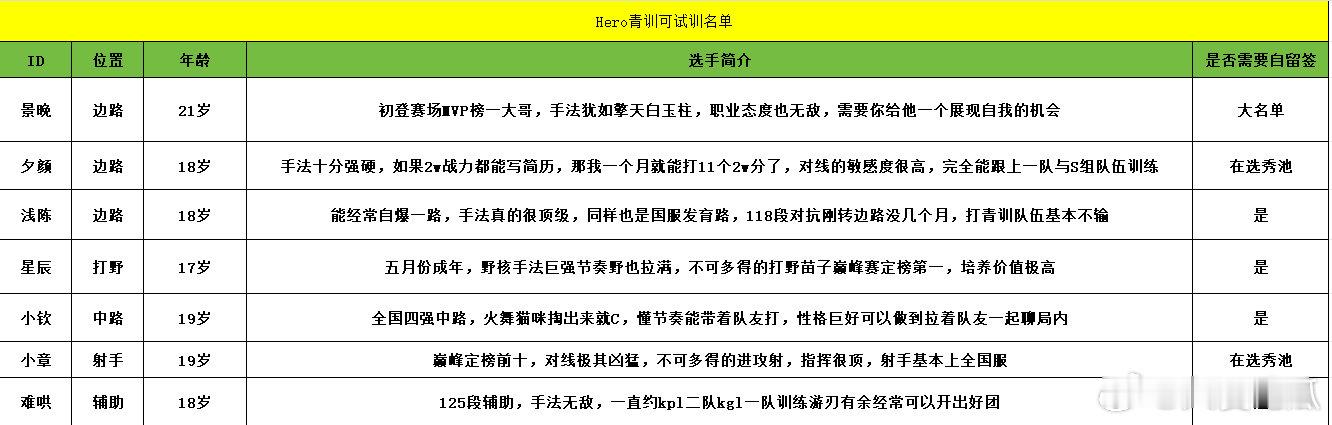 Hero可试训名单