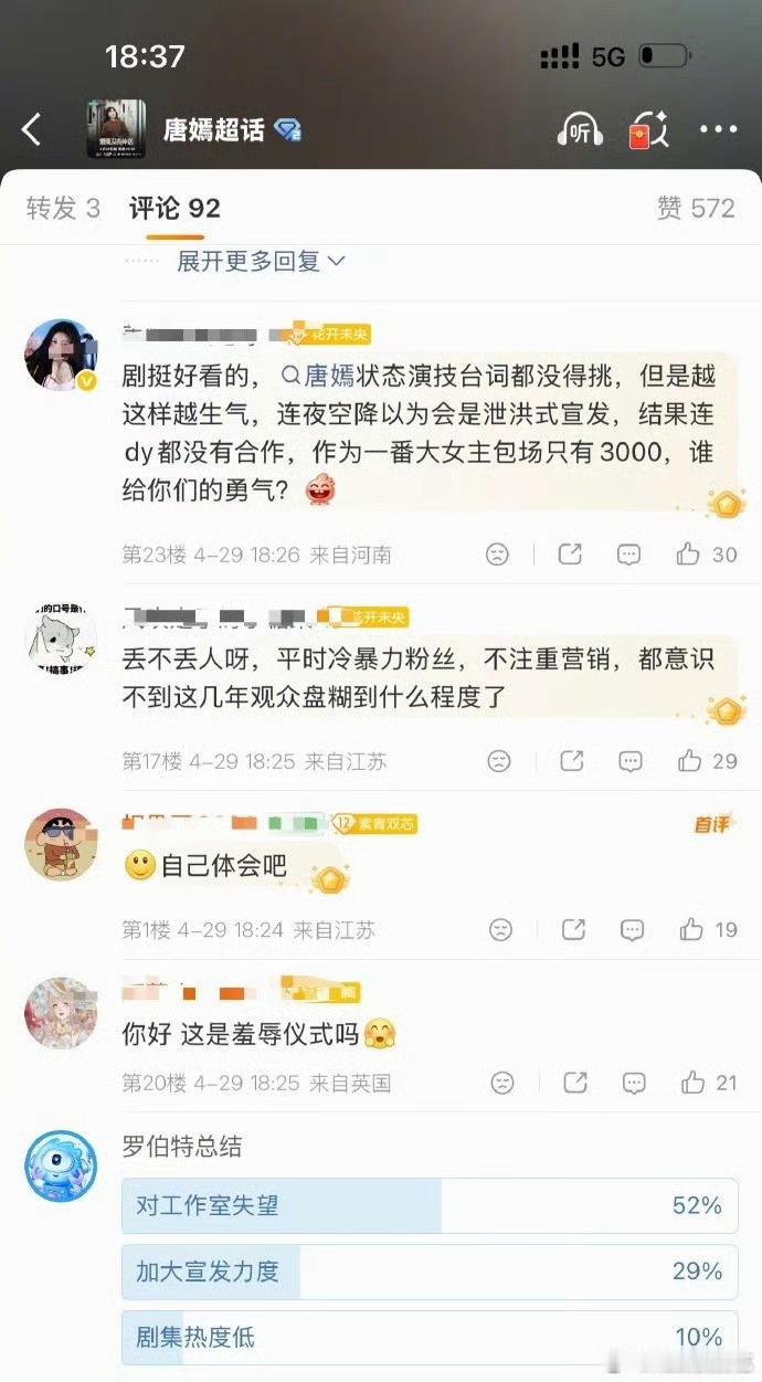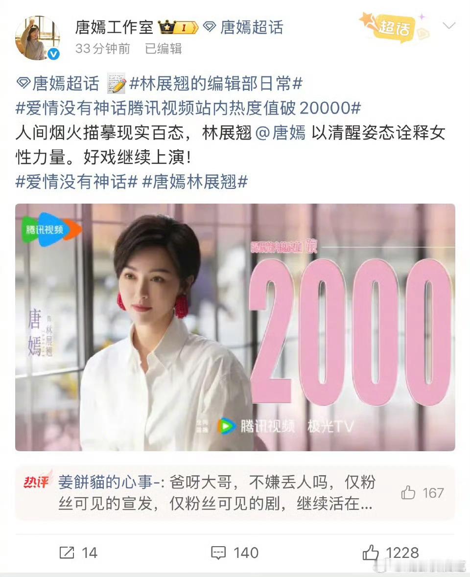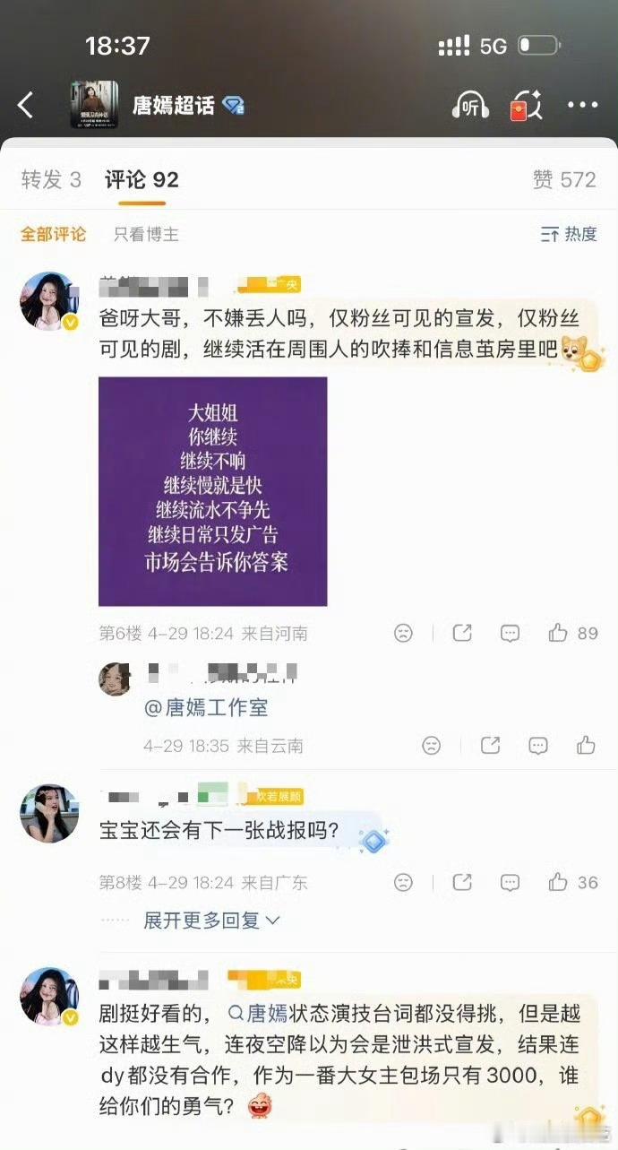 爱情没有神话台网双扑,招商也不如意,粉丝在唐嫣工作室发的战报评论区吐槽宣发~大概搜了下爱情没有神话宣发公司也不少,还有粉圈非常知名的来趣 唐嫣工作室 宣发 唐嫣新剧首日云合小于2%