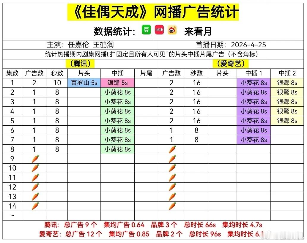 佳偶天成12.1%4月29日 在播剧广告:黑夜告白和爱情没有神话2广,蜜语纪1台🥕,1台2广,佳偶天成双台🥕