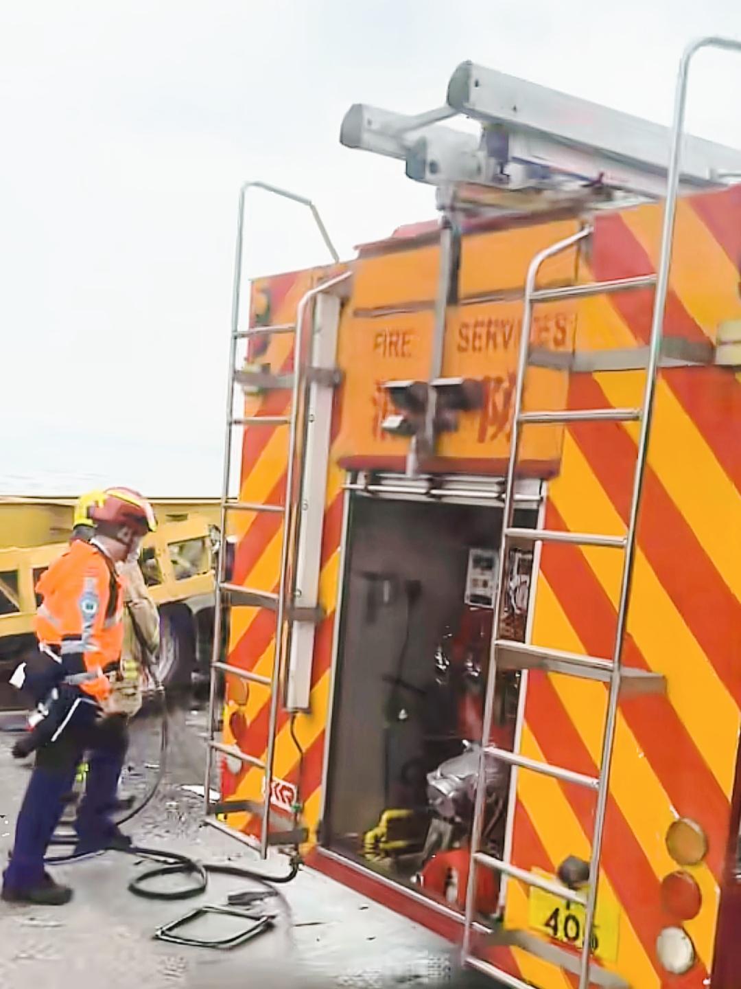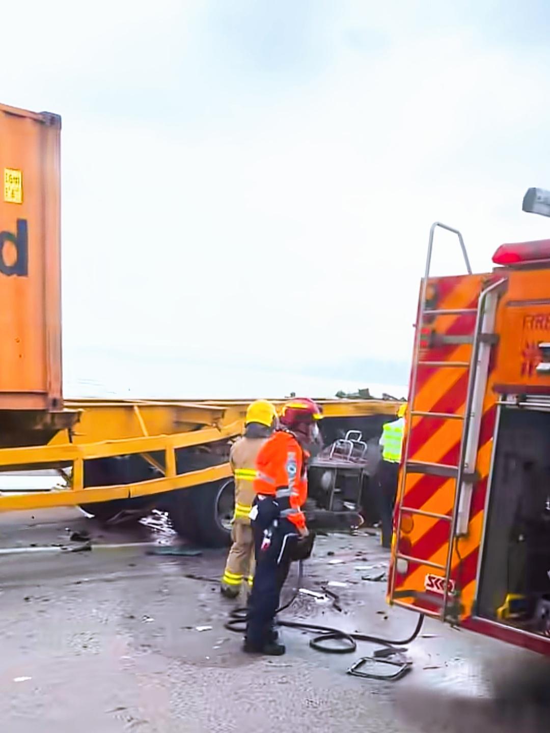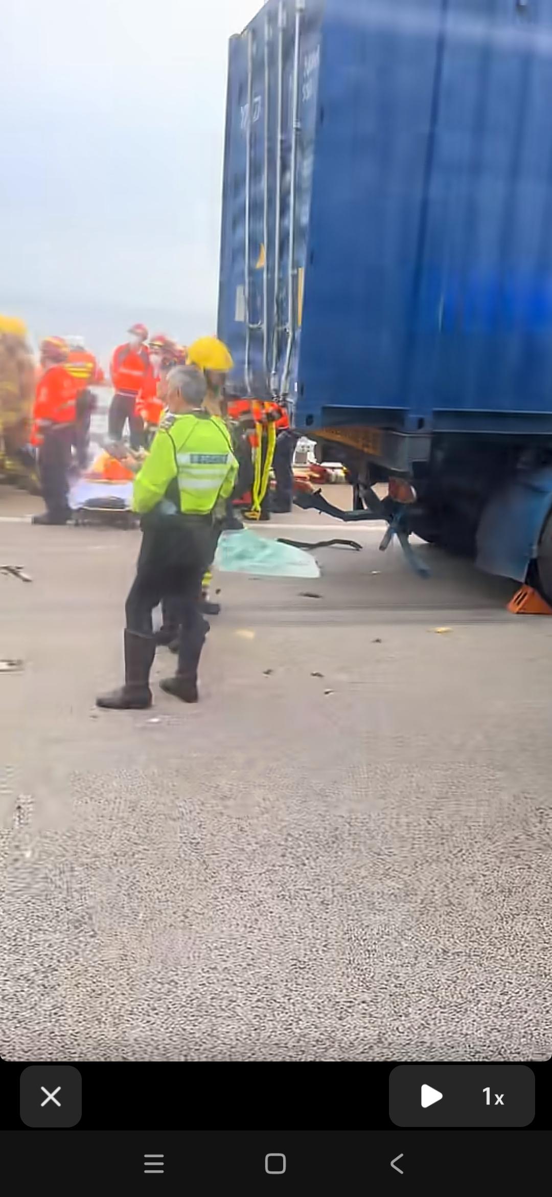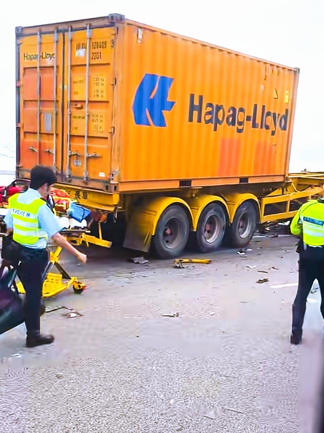 今天下午三点半左右,深圳湾大桥往深圳方向中段出了个大事。三辆货柜车加一辆工程车撞成一串,其中一辆货柜车车头直接撞扁了,跟消失了一样,满地碎片。后车司机被卡住脚,消防四点多把人救出来送屯门医院,还好人是清醒的。事故导致往深圳方向堵得死死的。 在深圳这么多年,经常看到香港澳门的车开的飞快,这些香港、澳门车牌的货车,在大陆路上开得是真的猛,感觉路是他们家修的一样,恨不得插上翅膀飞。令我惊讶的是,事故离深圳2公里,没想到出警的还是香港警察……深圳湾大道 深圳湾大街天桥 湾区车祸 深圳湾查验 深圳身边事 广东