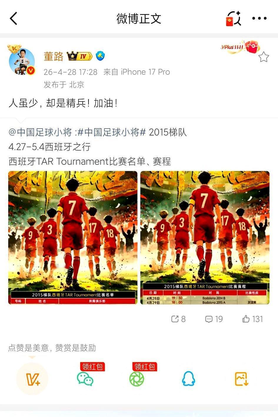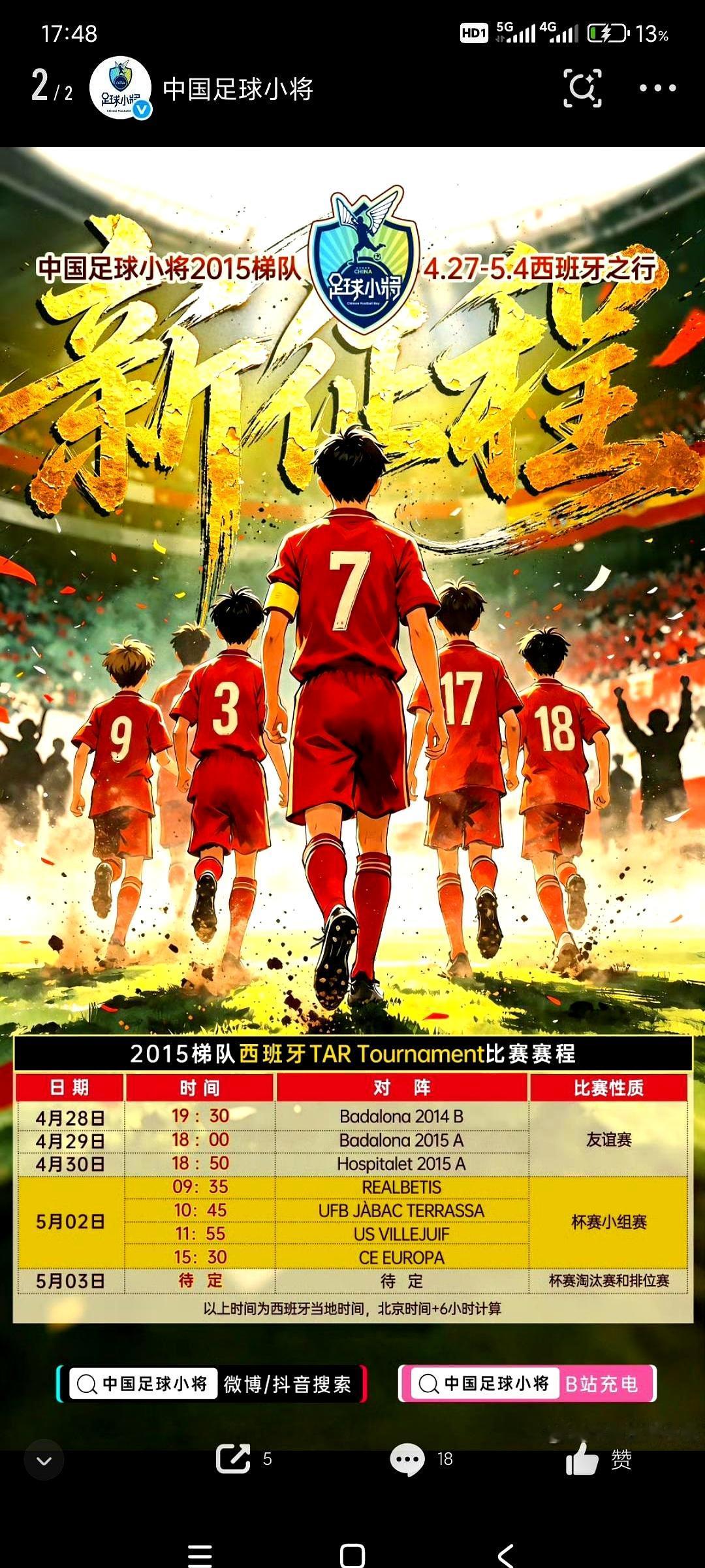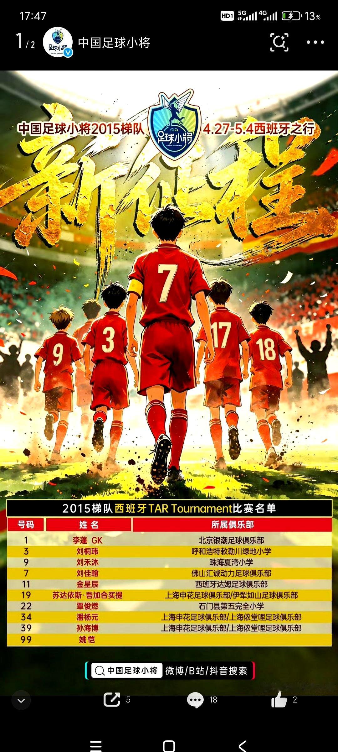 中国足球的希望,真就得靠这群孩子? 董路带的2015梯队,人不多,但都是精英。这不,孩子们已经飞抵西班牙,直奔巴塞罗那,准备开干TAR锦标赛。 官方名单和赛程都出来了,这次是真刀真枪地跟欧洲高水平对手过招。 更狠的是,像张与田这样的小将,已经直接杀进西班牙加泰地区的联赛球队了。 这路子走对了,光荣属于孩子们。