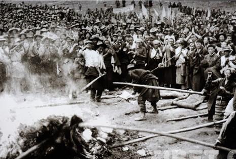 密室锁着账本,烙铁烫在人身上,法器盛着人脑浆。 那天工作队用枪托砸开克松庄园那扇门,没想着找什么“文物”,就为分地。结果掀开个密室,里头堆着一摞发霉的账册,纸页上全是农奴名字,后面跟着一辈子还不清的债。 账本是用烙铁按的手印,不是不会写字,是规定你不配签字。利息滚着滚着,儿子就得替老子还,还到死为止。 有本子记着“扎西偷粮三斤”,罚割右耳,后来人没了,账上还写着“欠劳役八十三天”。 还有几件东西没法当摆设:锈铁链、烧红的烙铁、鼓面绷着人皮的法器。鼓是喇嘛念经用的,人皮从谁身上剥的?档案里写“佛堂索要二十七颗人头”,没写是谁的。 清查不是乱砸,是编号、登记、移交。七月份克松成立农民协会,九月烧掉所有契约,发下土地证。 现在克松村口立着块碑,上面刻着当年分地的户主名字。达瓦片多的名字也在上面,他孙女去年当了县人大代表。 密室打开了,东西还在博物馆玻璃柜里。 有些门,开一次就够了。