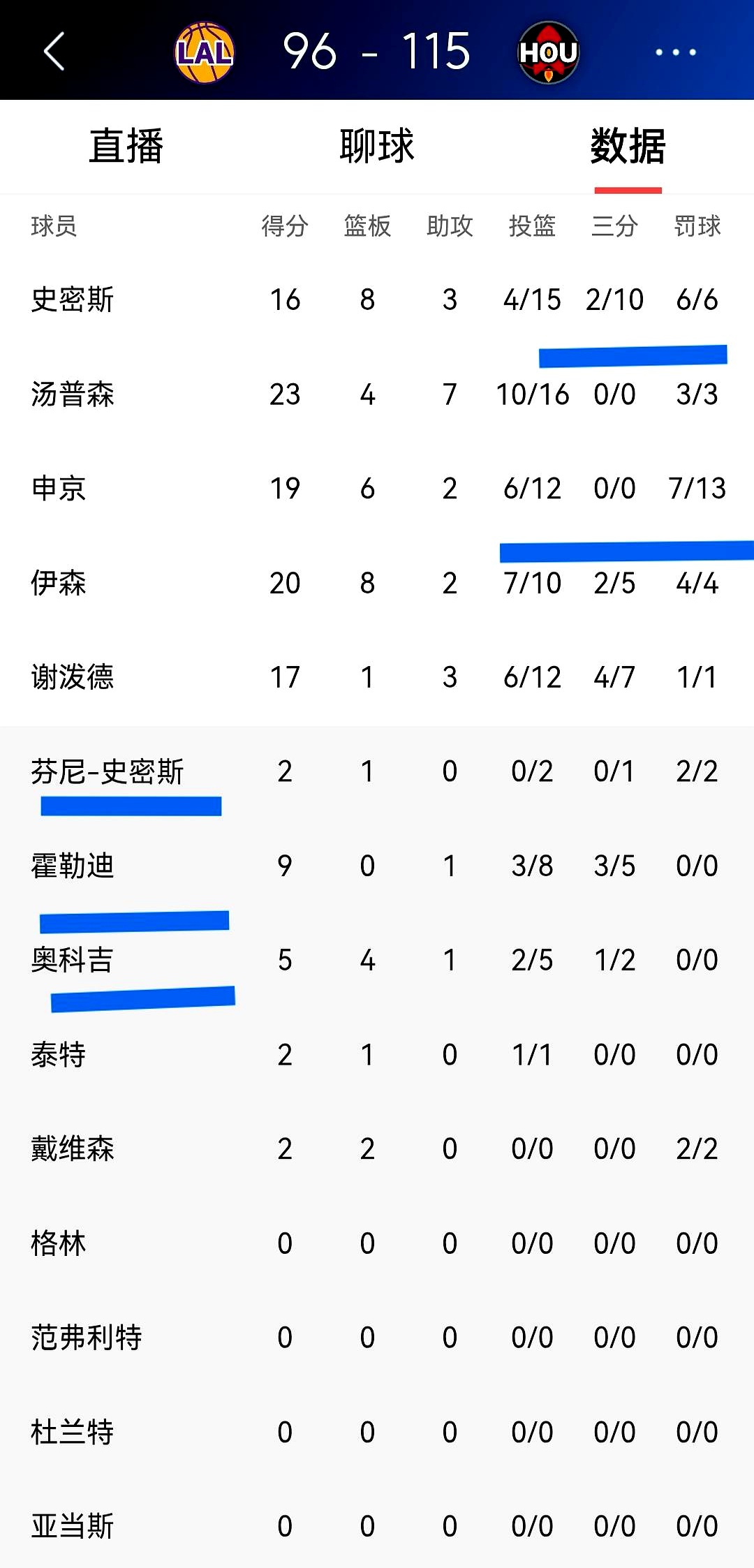 湖人那边詹姆斯手感冰凉,9投2中还送了8个失误,全队三分球22投仅5中。