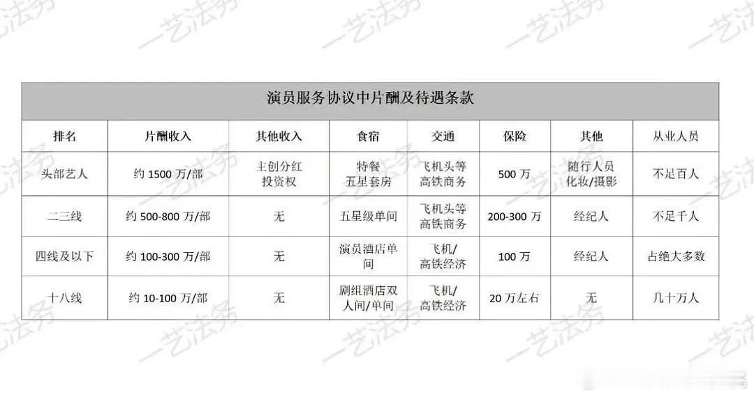 头部演员片酬砍半,另附一个片酬等级不知道真假的