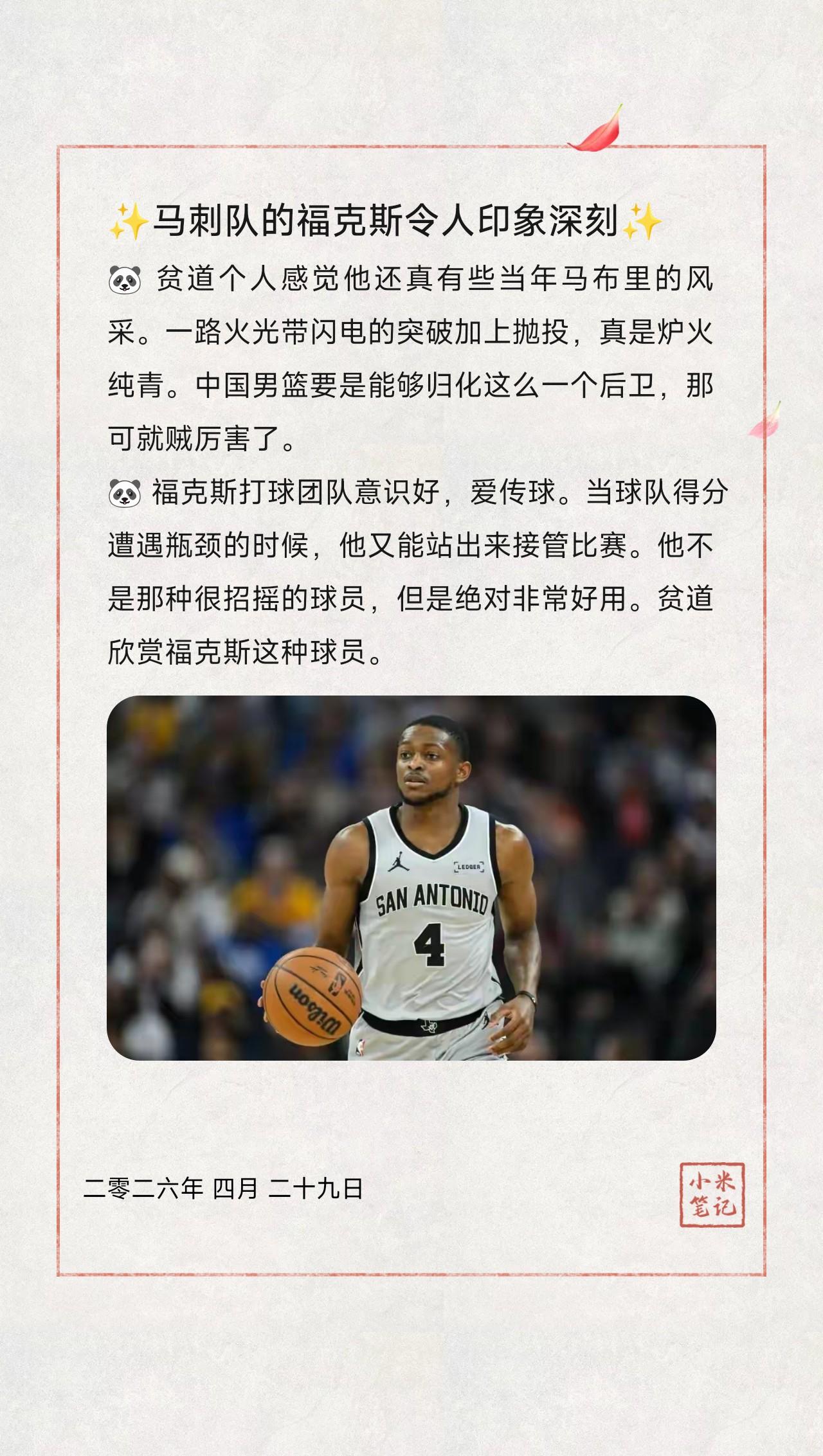 🐼 贫道个人感觉他还真有些当年马布里的风采。一路火光带闪电的突破加上抛投,真是炉火纯青。中国男篮要是能够归化这么一个后卫,那可就贼厉害了。 🐼 福克斯打球团队意识好,爱传球。当球队得分遭遇瓶颈的时候,他又能站出来接管比赛。他不是那种很招摇的球员,但是绝对非常好用。贫道欣赏福克斯这种球员。 作者:龙须面🧐
