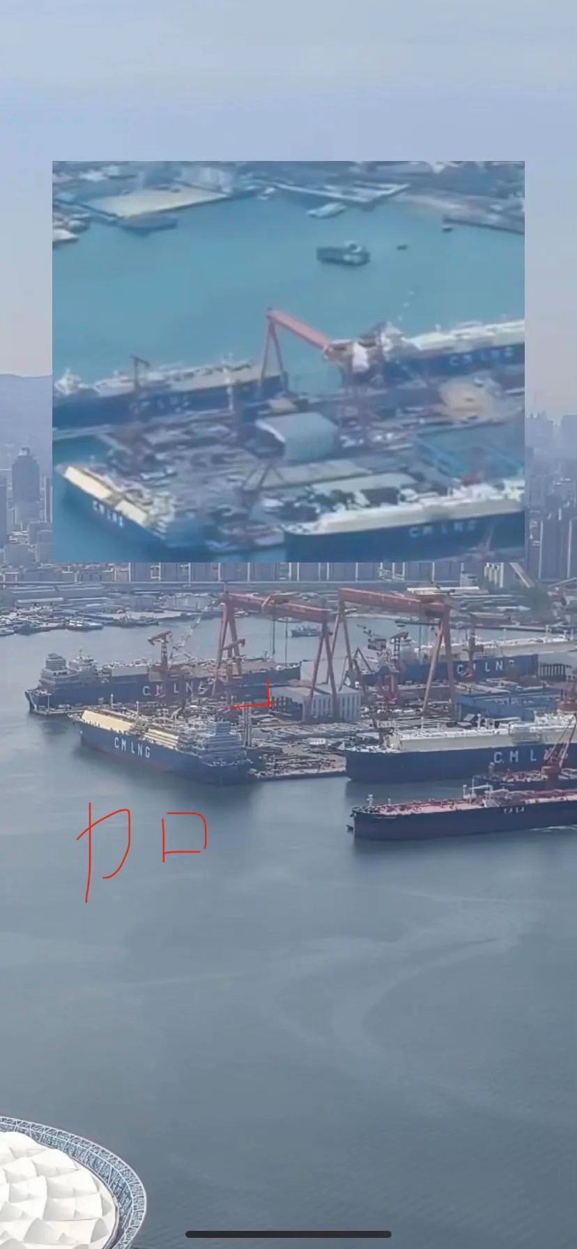 图二圈中疑似汽轮机正在吊装