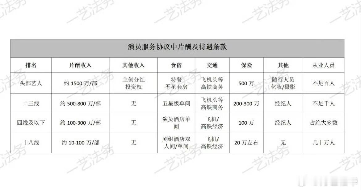 18线艺人片酬都是10万—100万(降薪后),一年要是接2部戏,这一年就比很多普通劳动者高了,酒店还能住单间,你出差单位报单间吗?出行能坐飞机,这是处级领导待遇。接不到戏,还能带货接广告,搞点别的赚钱,给人家录个生日祝福啥的。干着世界上最轻松的活儿——全靠个人追求,完全没有绩效考核,翻车了怪观众不会欣赏就行了,在他单位翻车了审计问你这么大笔钱花哪了,干啥去了,咋没一分钱掰成八瓣用,然后送你去坐牢,真的没啥好心疼geigei的,心疼心疼自己吧!
