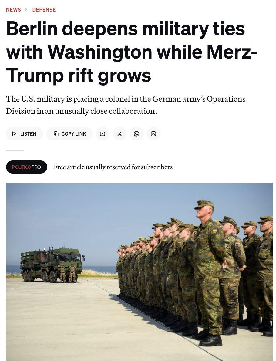 德国计划10月前任命一名美国上校加入其总参谋部,直接负责作战指挥。这是德国历史上首次让外国军官进入核心指挥层,旨在深化北约内部整合。 德方强调,美军上校仅“授权履职”,指挥权仍归德国,不涉及主权让渡。左翼党批评此举侵蚀国家主权,要求公开讨论。