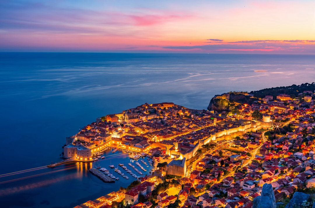 杜布罗夫尼克的落日蓝调。当亚得里亚海暗下去,古城灯火亮起,城墙、港口、海面和晚霞,在同一个瞬间进入了最迷人的状态。君临城,在黄昏之后,才真正属于摄影师。等一场日落,也等自己的心情。 克罗地亚·杜布罗夫尼克