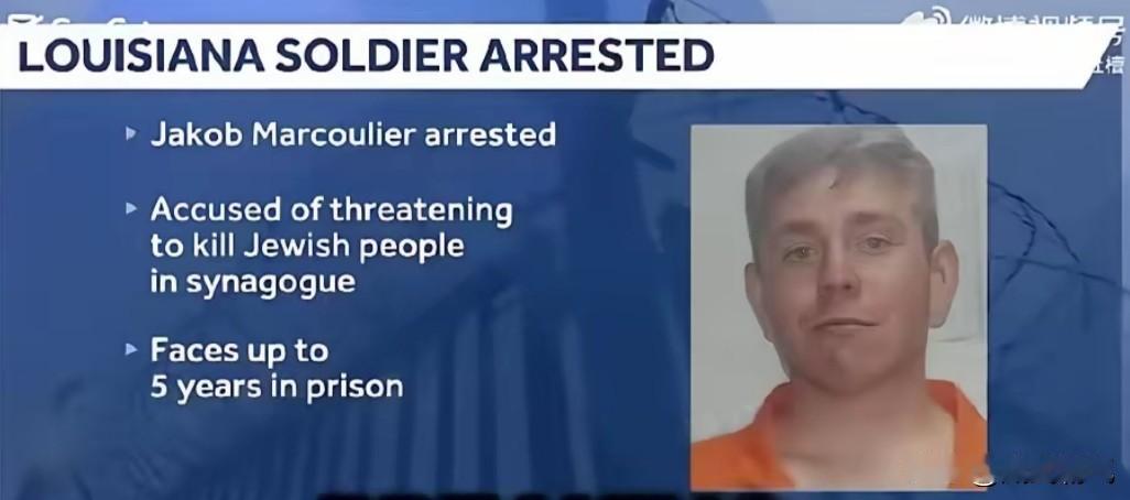 一名美国现役士兵称自己最大的梦想,就是用枪杀光犹太教堂里所有犹太人。话说完没有多久就被逮捕然后遭到了起诉,目前最高可被判五年监禁。 近日美国曝出一起惊悚事件:22岁美国陆军现役士兵雅各布・马库利尔,在社交平台Discord聊天群里公开发表反犹言论。 他的原话是,等部署结束之后,如果犹太人仍然统治着我们的政府,我将带着AK步枪, 75发子弹和所有备用的弹匣,以及四级防弹插板和三级头盔, 我要走进犹太的教堂,杀死里面我认识的每一个犹太人。 他还在聊天里强调“这就是我人生的终极目标”, 语气毫无玩笑成分,甚至和群友讨论具体行动细节, 说自己已经准备好面对任何后果。他在Discord上用的网名是“el.bostino”,从今年2月就开始在多个聊天频道散布类似仇恨言论, 直到有知情者实在看不下去,悄悄向FBI国家威胁行动中心举报了这个危险分子。 FBI接到线索后立刻展开调查,很快锁定了这个账号的真实身份——驻扎在路易斯安那州波尔克堡的陆军士兵雅各布・马库利尔。 调查人员获取了他在Discord上的全部音频记录, 里面的内容一次比一次极端,不仅针对犹太人,还多次攻击美国政府,称其被“犹太势力控制”。 4月23日,FBI联合军方将马库利尔逮捕,他当场没有反抗,被移交美国法警局羁押,至今仍未获释。 美国西部路易斯安那州联邦检察官办公室随后以“州际传播威胁”罪对他提起公诉,这项罪名一旦成立 ,最高可判五年联邦监禁。 目前案件还在审理中,拘留听证会已安排在本周三下午,他的律师暂时没有对媒体作出回应。 这起事件在美国引发不小震动,尤其在犹太社区引发恐慌。 有犹太团体负责人表示,现在美国反犹情绪越来越公开化,连现役军人都发表如此极端言论,让人担忧国内安全形势。 美国陆军也发表声明,称马库利尔的言论完全违背军队价值观,军方将全力配合司法部门调查,绝不姑息任何形式的仇恨言论和暴力威胁。 截至4月29日,案件仍在进一步审理中,马库利尔是否会认罪、最终将面临怎样的判决,还有待司法部门的最终裁定。 这起事件也再次让我们认清两件事情,一什么所谓的明主,言论自由,都是表面上的,美国社会矛盾已经烂到了根子,不仅仅是美国民众,从上到下,从里到外都一样.. 二是,整个美国确实被犹太人控制了,这一点美国底层一清二楚。。。