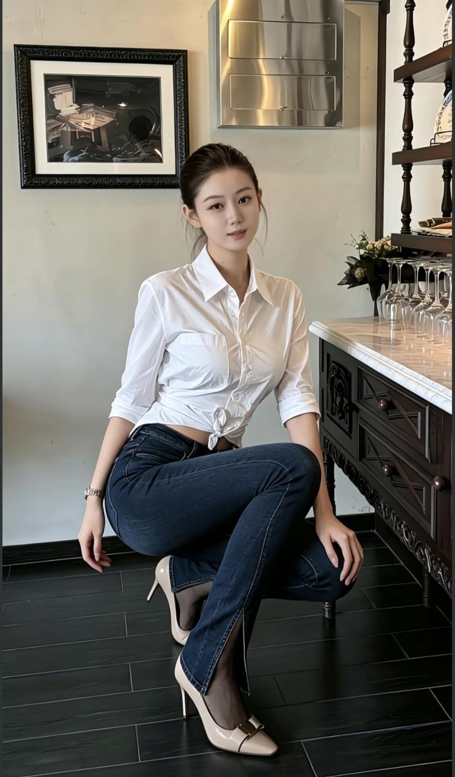 牛仔裤如何穿出时尚感? 牛仔裤的时尚感,全靠搭配技巧👇 ✅ 选高腰开叉款,显腿长一绝 ✅ 搭配收腰白衬衫,优化比例 ✅ 高跟鞋+黑丝,瞬间提升精致度 一套下来,轻松拿捏又美又飒的轻熟风~ 日常穿搭 穿搭分享