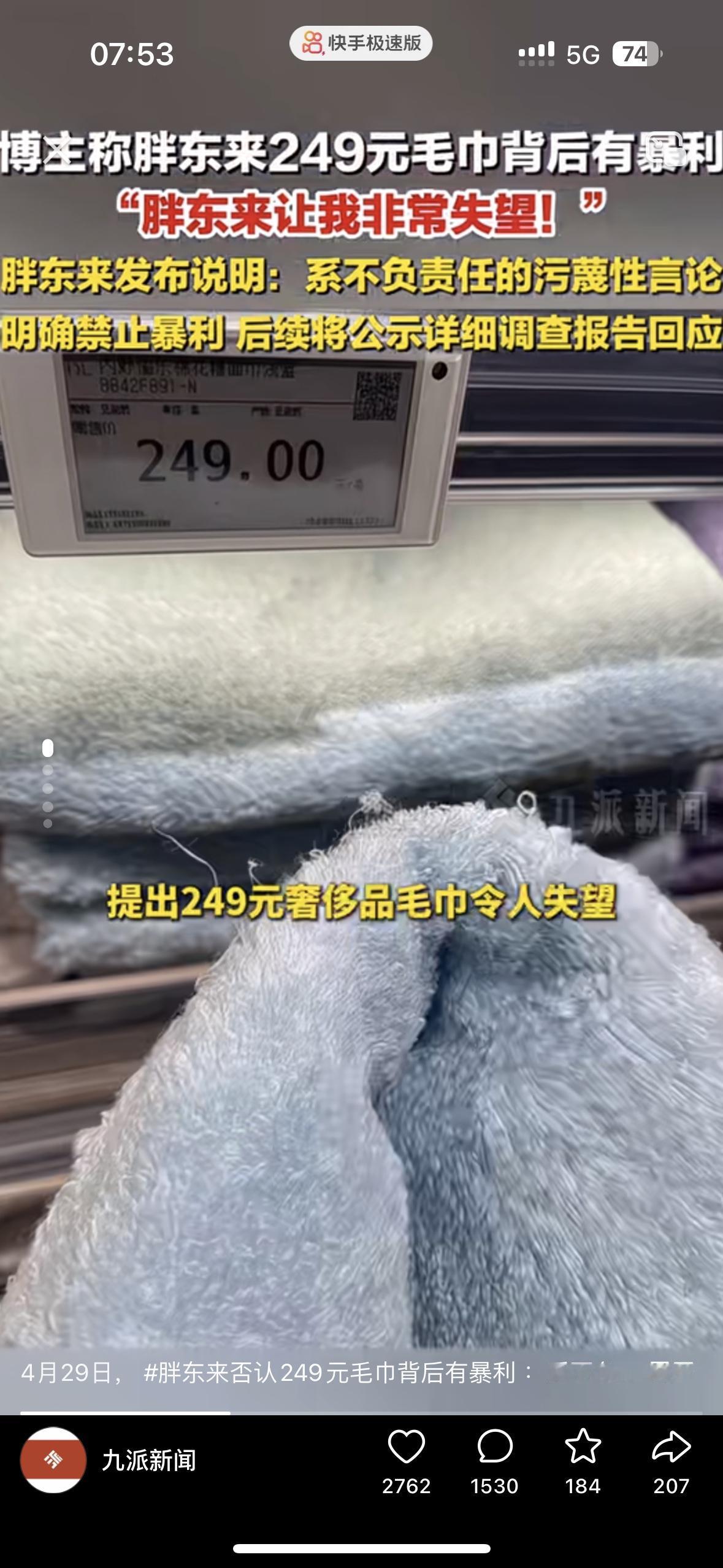 只有我也觉得249的毛巾贵吗? 有博主说胖东来的毛巾卖249,价格奢侈却让人失望,言外之意就是这个毛巾不值249,肯定存在暴利。 存不存在暴利我们不清楚,但我也去过胖东来,尤其是某些自营产品其实并不便宜,我买了一些水果和那个小汉堡还有吃的就好几百块钱,衣服什么的也不便宜。但利润都写的很清楚,大家会觉得249的毛巾贵吗?