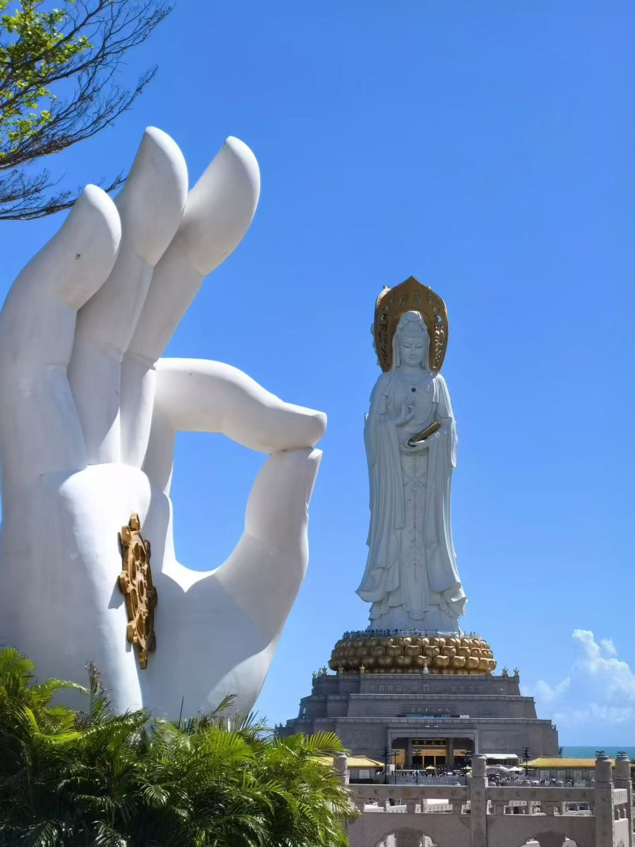 ✅ 观音广场:全景拍观音全貌,蓝天大海做背景。