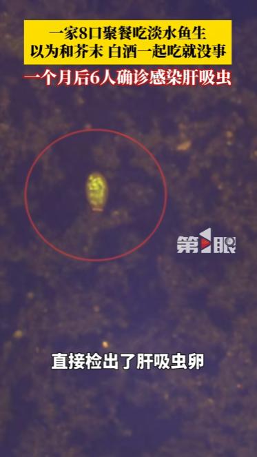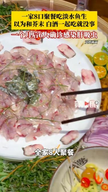 广东,一家8口聚餐时吃了淡水鱼生,以为蘸点芥末再来口白酒就能“消毒杀菌”,放心大快朵颐。结果一个月后噩梦就来了——高烧不退、上吐下泻、腹部如刀绞,辗转多家医院都查不出病因,最终在广州查出肝吸虫卵,8人里竟有6人确诊感染,其中3人全程毫无异样,体内却早就被寄生虫入侵。 家庭聚餐本是传递温情、共享美味的时刻,一道合家人心意的菜品,总能让团圆氛围更浓。 可对于南方某地区的一个 8 口之家来说,一次再普通不过的家庭聚餐,却成了全家人健康的 “噩梦开端”。 他们围坐一桌享用淡水鱼生,坚信搭配芥末、白酒、食醋就能杀灭所有病菌,丝毫没意识到,这份对美食的偏爱,正将寄生虫带入体内。 短短一个月后,家中 6 人陆续出现身体不适,经医院检查,全部确诊感染肝吸虫,这个结果让全家人后悔不已,也给所有爱吃鱼生的人敲响了警钟。 淡水鱼生是不少地区的传统美食,凭借鲜嫩爽滑的口感,收获了大批食客的喜爱。 很多人吃淡水鱼生时,都有一套自己的 “杀菌理论”:蘸上足量芥末,喝几口高度白酒,再搭配食醋、生抽,认为这样就能把鱼里的寄生虫、细菌全部杀死,吃得放心又安心。 这个 8 口之家也是如此,聚餐时特意准备了淡水鱼生,全家人轮番享用,边吃边聊,没人觉得这道常见美食会有健康隐患。 他们遵循着流传已久的吃法,觉得老祖宗传下来的方式不会出错,却忽略了医学层面的科学真相,最终为这份认知误区付出了代价。 感染肝吸虫后,并不会立刻出现明显症状,这种潜伏期的隐蔽性,让很多人放松了警惕。 这个家庭的成员在吃完鱼生后,前两周身体没有任何异常,依旧正常生活、工作,没人把聚餐和后续的健康问题联系起来。 直到一个月左右,先后有人出现腹部隐痛、消化不良、浑身乏力、食欲减退等症状,起初大家以为是普通肠胃不适,自行吃了调理肠胃的药物,可症状不仅没有缓解,反而愈发明显。 意识到情况不对后,家人们结伴前往医院检查,经过血常规、肝功能、寄生虫抗体检测等一系列检查,最终的结果让所有人震惊:一家 8 口,有 6 人确诊感染肝吸虫,而致病的源头,正是那次聚餐吃的淡水鱼生。 医生在了解情况后,明确告知家人,他们坚信的 “芥末 + 白酒 + 醋杀菌法”,根本没有任何作用。 肝吸虫的囊蚴寄生在淡水鱼的体内,具有极强的抵抗力,芥末、食醋、生抽等调味品,只能短暂改变食物表面的酸碱度,无法渗透到鱼肉内部杀死囊蚴; 高度白酒看似能杀菌,可人体饮用后,酒精在体内被快速稀释,根本达不到杀灭寄生虫的浓度,即便用白酒浸泡鱼肉,短时间内也无法破坏囊蚴的结构。 医学实验早已证明,想要彻底杀死肝吸虫囊蚴,唯一有效的方法就是将鱼肉彻底煮熟,温度达到 100℃并持续足够时间,才能从根源上杜绝感染风险。 明知淡水鱼生存在感染肝吸虫的风险,为何还有无数人执意食用? 是对传统口味的执念太深,还是对寄生虫危害的认知太过浅薄? 有人觉得,吃了几十年淡水鱼生都没事,偶尔一次不会那么倒霉,抱着侥幸心理忽视风险; 也有人认为,只要食材来源干净、处理得当,就能避免感染,可淡水鱼的生长环境难以把控,即便人工养殖,也无法完全杜绝肝吸虫寄生的可能。 肝吸虫又称华支睾吸虫,是一种专门寄生在人体肝脏胆管内的寄生虫,一旦感染,会长期损伤肝脏功能。 初期感染症状轻微,容易被误认为是普通肠胃病,可随着寄生虫在体内不断繁殖、存活,会引发胆管炎、胆结石、肝硬化,甚至诱发肝癌,对人体的伤害是长期且不可逆的。 更可怕的是,肝吸虫病的潜伏期可长达数月甚至数年,很多人感染后毫无察觉,等到出现严重症状时,肝脏已经受到了不可逆的损伤。 除了淡水鱼生,醉虾、醉蟹、生腌海鲜等未彻底煮熟的水生食材,同样是肝吸虫、肺吸虫等寄生虫的传播载体。 很多人觉得生腌、醉制的食材风味独特,却不知道这些制作方式,根本无法杀死寄生虫囊蚴。 在日常饮食中,不少家庭还存在生熟案板不分、生熟刀具混用的情况,即便不吃鱼生,也可能通过交叉感染染上寄生虫。 面对淡水鱼生带来的健康隐患,我们无需全盘否定传统美食,但必须坚守科学的饮食底线。 美食的前提是安全,口感的享受不能以牺牲健康为代价。 那些流传已久的 “杀菌偏方”,终究经不起科学的检验,与其抱着侥幸心理赌运气,不如选择最稳妥的方式 —— 彻底煮熟食材。 无论是淡水鱼、虾蟹,还是其他水生食材,只要经过高温彻底烹煮,就能杀死所有寄生虫,既能保留食材的营养,又能守护家人的健康。 信息来源: 第1眼新闻 2026年4月29日 《一家8口聚餐吃淡水鱼生,一个月后6人确诊感染肝吸虫!以为蘸着芥末、醋和白酒一起吃就没事,医生表示,这些佐料在短时间内根本无法杀死肝吸虫囊蚴,唯一有效的方法就是彻底煮熟。》