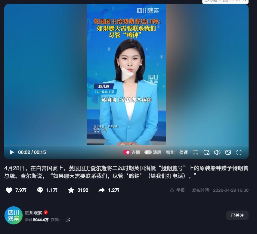 当地时间4月28日,特朗普在白宫设下国宴款待到访的英国国王查尔斯三世,这场被西方媒体吹成“两个国王世纪同框”的晚宴上,最炸的不是觥筹交错的排场,而是查尔斯亲手送上的一份私人礼物——二战时期英国海军“特朗普号”潜艇上的原装舰钟。 这份礼物从来都不是随手挑选的纪念品,而是英国外交团队磨了无数遍的精准投喂,把投其所好四个字玩到了极致。 1944年出厂的特朗普号潜艇,是二战后期英国海军的主力作战舰艇,曾在太平洋战场直接参与对日作战,是实打实的二战功勋装备。 这份礼物精准戳中了特朗普最吃的两个核心点:一是同名带来的专属感,完美迎合了他刻在骨子里的自恋心态,二是二战战胜国的强者叙事,刚好对上他天天挂在嘴边的“让美国再次伟大”的核心论调。 英国太懂特朗普了,两国政客谈一百次关税、防务合作,都不如一件戳中他个人喜好的礼物管用,这也是英国放着首相不用,非要把国王抬出来的核心原因——王室的身份,能给足特朗普最想要的排场与面子,而这份礼物,能直接敲开他的心防。 查尔斯这次访美,根本不是官方口径里“纪念美国独立250周年”的友好访问,就是一场来给英美关系救火的紧急公关。 如今的英美特殊关系,早就被特朗普捅得千疮百孔,只剩一层窗户纸了。 特朗普第二任期上来,说打就打的伊朗战事里,英国为首的欧洲盟友全程作壁上观,等仗都快打完了才说要派航母过来支援,被特朗普直接当众驳回,连英国首相斯塔默都被他扣上了“失败者”的帽子。 更狠的是,特朗普连英国最在意的福克兰群岛主权支持,都放话要重新考量,英国驻美大使私下都直接坦言,英美特殊关系早就过时了,现在跟美国真有特殊关系的只有以色列。 英国政客跟特朗普的常规外交谈判早就谈崩了,所有常规手段全部失效,只能打出最后一张王牌——王室,让查尔斯用君主的身份,来给特朗普赔笑脸、递台阶,挽回两国关系的颓势。 那句“需要我们就鸣钟”的双关语,从来都不是简单的外交客套,而是英国把外交主动权彻底交出去的投名状。 表面上看,“鸣钟”只是英语里“打电话”的俚语,说白了就是一句“常联系”的场面话,可往深了说,舰钟是一艘军舰的灵魂,是海上作战的号令,是一言九鼎的承诺。 查尔斯这句话,翻译过来就是赤裸裸的表态:只要你特朗普发话,我们英国随时听候差遣。 至于国宴上那句“没有英国,你们现在还在说法语”的回怼,看似是针锋相对的嘴硬,实则是怕姿态放得太低,国内舆论不好交代,典型的外强中干,既想讨好美国,又想保住最后一点大国体面。 英国这步棋,走得又鸡贼又卑微,鸡贼在精准拿捏了特朗普的性格软肋,卑微在一个曾经的日不落帝国,如今要靠国王亲自给美国总统送礼物、说软话,才能勉强维系住那点可怜的国际话语权。 这场国宴上的礼物交换,说到底就是一场心照不宣的利益交易,根本改变不了英美关系的核心矛盾。 特朗普要的从来不是英国的奉承,而是绝对的服从,是欧洲盟友全都无条件跟着他的“美国优先”路线走,让美国在全球事务里说一不二。 而英国想要的,不过是靠着美国的余威,保住自己在欧洲的话语权,保住福克兰群岛的主权,保住自己联合国五常的体面。 这两个核心诉求从根上就是矛盾的,特朗普的美国优先,注定要不断薅欧洲盟友的羊毛,注定要让英国彻底沦为美国的跟班,而英国放不下的大国迷梦,又让它不甘心只做美国的附属品。 这口船钟,说到底就是给早已名存实亡的英美特殊关系,盖了一块好看的遮羞布。它能换来一时的外交和气,换不来两国真正的同心;能敲开特朗普的心门,却敲不碎两国之间越来越大的利益裂痕。国际政治从来都是实力说话,没有永恒的友谊,只有永恒的利益。 曾经的日不落帝国,如今要靠一件同名潜艇的老物件,去讨好自己曾经殖民地的总统,这本身就是最大的讽刺。 这口从二战炮火里走出来的船钟,当年鸣响的是战胜国的荣耀,如今却成了英国衰落的注脚,它敲得响白宫国宴的掌声,却敲不醒英国的大国迷梦,更挡不住美国单边主义的车轮,往后的英美关系,注定是大哥越来越任性,小弟越来越卑微。