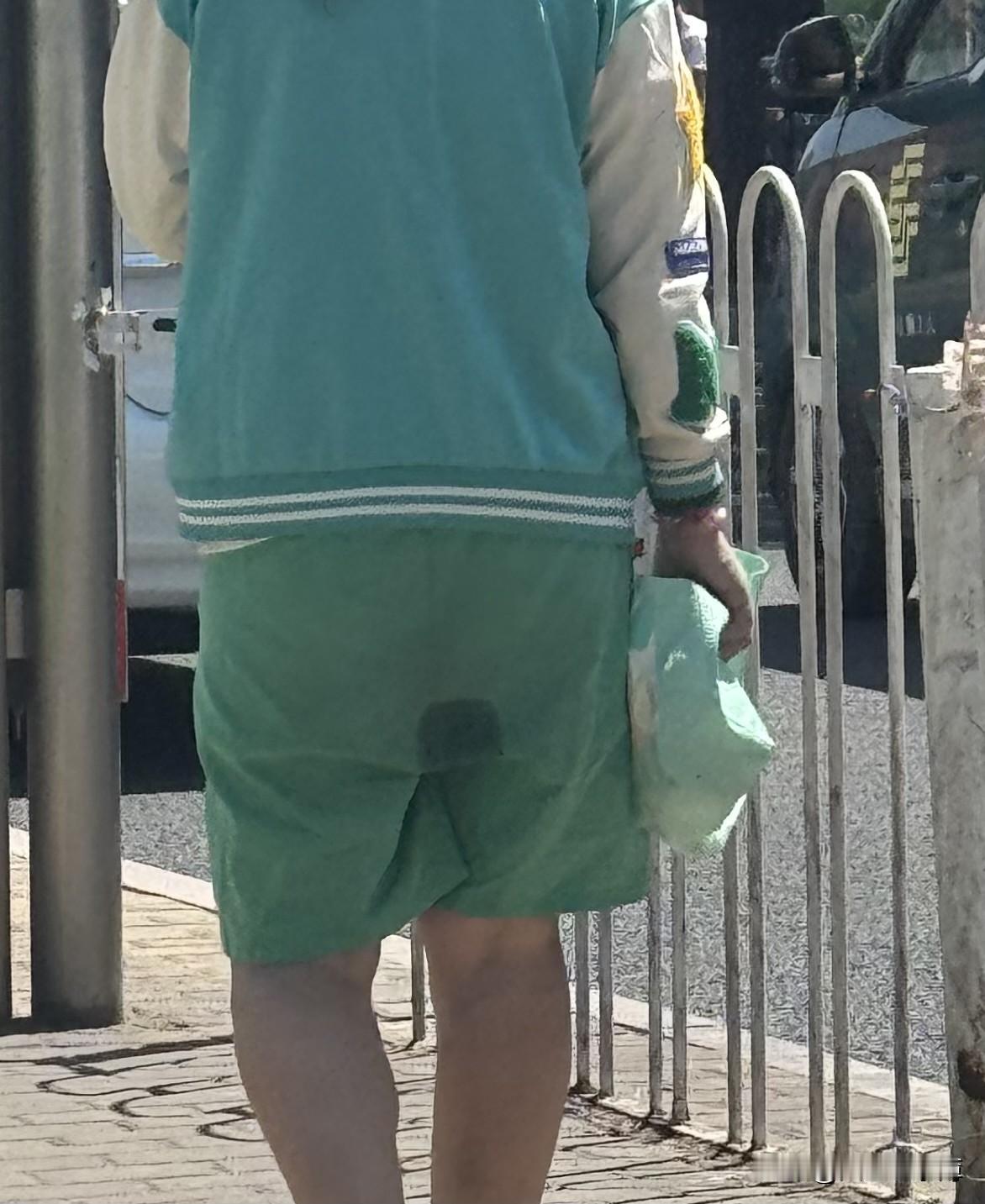 现在的人怎么了。 名牌衣服穿出了“性感”? 前面走过去,后面的人说:年纪轻轻的咋尿裤子了? 那不是尿裤子,只是跟裤子不一样颜色。