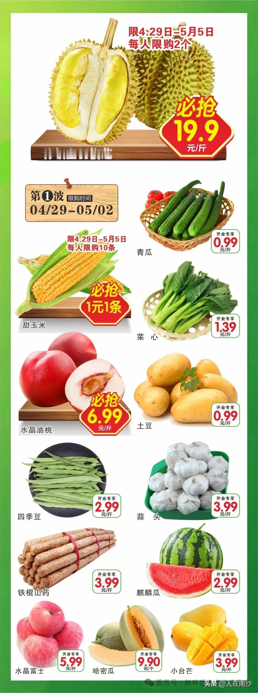 【南沙19.9元的榴莲你抢到了没?】最近好多南沙人都在抢19.9元的榴莲,不知道你抢到了没?位于华汇广场的鲜畔超市正式开业。开业搞了一波大的活动,其中最受关注的就是19.9元的榴莲。据说太抢手了,一开始就被抢没了。不过除了榴莲之外,其他蔬菜水果特惠价格也不错。青瓜0.99元一斤、玉米一元一条、土豆0.99元一斤、麒麟瓜2.99元一斤。 猪肉也很便宜,上肉2.99元一斤、五花肉6.99元一斤、吊龙28.99元一斤。 海鲜也不能错过,小龙虾15.9元一斤、基围虾19.9元一斤。 另外还有粮油、面包、熟食、日化用品、零食等等都有特价,数都数不过来。 重要的是,满68元免费停车2小时。 单笔满88元还能抽奖,一等奖是电鸡一台。 本次活动一共搞7天,一直到5月5日结束。 如果五一期间没有出游的话,可以过来华汇广场买买买吧,这次不用到三楼,直接在大门口一楼就是了。