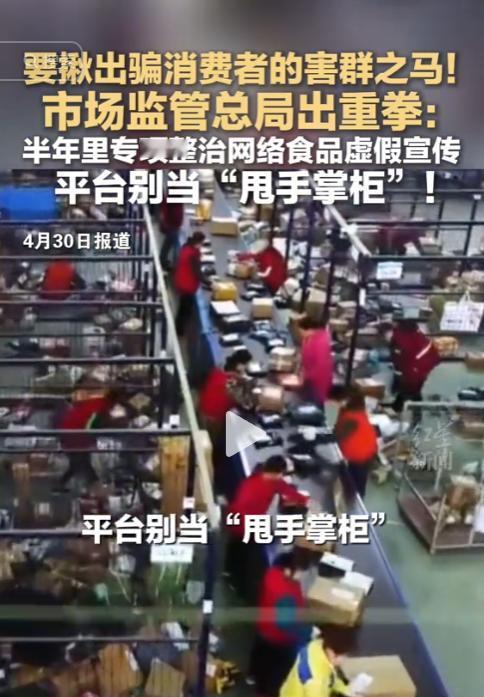 要揪出骗消费者的害群之马,市场监管总局出重拳:半年里专项整治网络食品虚假宣传 平台别当 “甩手掌柜”。2026 年 4 月 29 日上午,国家市场监督管理总局召开食品安全专题新闻发布会,正式宣布从即日起在全国范围内开展为期半年的网络食品、保健食品销售虚假宣传专项整治行动。 这记监管重拳直指当前网络食品市场最突出的痛点问题,明确提出要把那些欺骗消费者、扰乱市场秩序的害群之马彻底揪出来,把背后的黑灰产业链条连根斩断。 市场监管总局食品安全总监孙会川在发布会上直言,近期像 “优思益” 等一些翻车的 “网红产品”,就是披着 “高大上” 的外衣,用精心包装的营销话术和虚假宣传大肆 “收割” 消费者,让老百姓 “舌尖上的期待” 变成了 “舌尖上的上当”。 很多消费者花了高价买回家的所谓 “神奇食品”,其实根本没有宣传的那些功效,有的甚至还存在安全隐患。 行动重点整治三类违法违规行为。 第一类是虚假宣传行为,这也是最常见的问题。 比如普通食品却通过各种方式明示或者暗示自己具有治病、保健、防病的功能,把普通的糖果说成能 “降血糖”,把普通的饮料说成能 “抗癌”;还有保健食品夸大功效,甚至直接暗示自己可以代替药物治疗疾病。 这些行为故意混淆食品、保健食品和药品的界限,对消费者尤其是老年人和慢性病患者造成了极大的误导。 第二类是违法广告行为。 一些商家为了增加可信度,会对食品的产地、成分、功能等胡编乱造、张冠李戴,还会利用所谓的 “专家”“学者”“医生” 穿着白大褂站台背书,或者通过虚假的用户评价、成功案例来欺骗消费者。 特别是在直播带货中,“剧本式”“演戏式” 的虚假营销层出不穷,主播们声泪俱下地讲述产品功效,实际上都是提前写好的剧本。 第三类是平台机构违法行为。 长期以来,一些电商平台和直播平台对入驻商家的资质审核把关不严,对平台上的虚假宣传行为视而不见、放任不管,甚至有的平台还为了流量和利润纵容造假、配合忽悠。 这次专项整治明确要求平台不能再当 “甩手掌柜”,必须切实履行好主体责任。 在执法力度上,这次行动将坚持 “最严监管” 原则。 对主观故意实施虚假宣传违法行为的,一律依法顶格处罚;对多次违法、屡教不改的经营者,依法纳入严重违法失信名单,实施联合惩戒;对违法行为负有直接责任的企业法定代表人、主要负责人和直接责任人,不仅要处以个人罚款,情节严重的还将依法实施从业禁止,让他们再也不能从事食品行业。 特别值得注意的是,这次整治明确提出要坚持 “一案多查”。 对于明星带货、网络主播、运营团队等参与虚假宣传的,将依法追究他们的法律责任。 市场监管总局强调,直播间不是 “法外之地”,“短期合作” 也不是 “免责金牌”,只要是在直播间说过的话、带过的货,都必须对消费者负责。 平台责任是这次专项整治的重中之重。 市场监管总局要求,所有网络交易平台都必须设立专门的食品安全管理机构,配备食品安全总监和食品安全员,建立健全入网审查、风险管控、违法行为处置等全流程管理制度。 对平台内出现的虚假宣传行为,平台要及时采取下架商品、暂停服务、封禁账号等措施,并向监管部门报告。 如果平台管理缺位、整改不力,甚至放纵虚假宣传、对乱象 “捂盖子”,将依法从严从重处罚。 市场监管总局特殊食品司司长刘松涛在发布会上还专门为保健食品违法行为划出了 “三条高压线”。 一是严打 “碰瓷疗效” 式虚假宣传,坚决查处故意混淆保健食品与药品界限,明示或暗示产品具有治病、防癌、替代药物等功效的行为; 二是严打 “花样忽悠” 式营销乱象,严厉查处利用免费体检、旅游、会议讲座等形式欺诈推销保健食品的行为; 三是严打 “甩手掌柜” 式平台责任缺失,压紧压实平台的资质审核和日常管理责任。 刘松涛特别提醒广大消费者,保健食品不是药物,不能代替药物治疗疾病。消费者在购买保健食品时,一定要认准包装上的 “蓝帽子” 标志和批准文号,仔细查看标签说明书上的保健功能和适用人群,不要轻信任何声称能治病的保健食品广告。 这次专项整治行动将持续到 2026 年 10 月底。市场监管总局表示,将坚持线上线下统一监管尺度,做到 “线上盯着查、线下追着打、全链条一锅端”,不让任何一个违法者心存侥幸,不让任何一条违法链条漏网。 守护 “舌尖上的安全” 没有终点。这次市场监管总局出重拳整治网络食品虚假宣传,既是对人民群众反映强烈问题的积极回应,也是推动网络食品市场健康发展的必然要求。 相信通过这次专项整治,能够有效净化网络食品消费环境,让消费者买得放心、吃得安心,真正守护好老百姓 “舌尖上的幸福”。