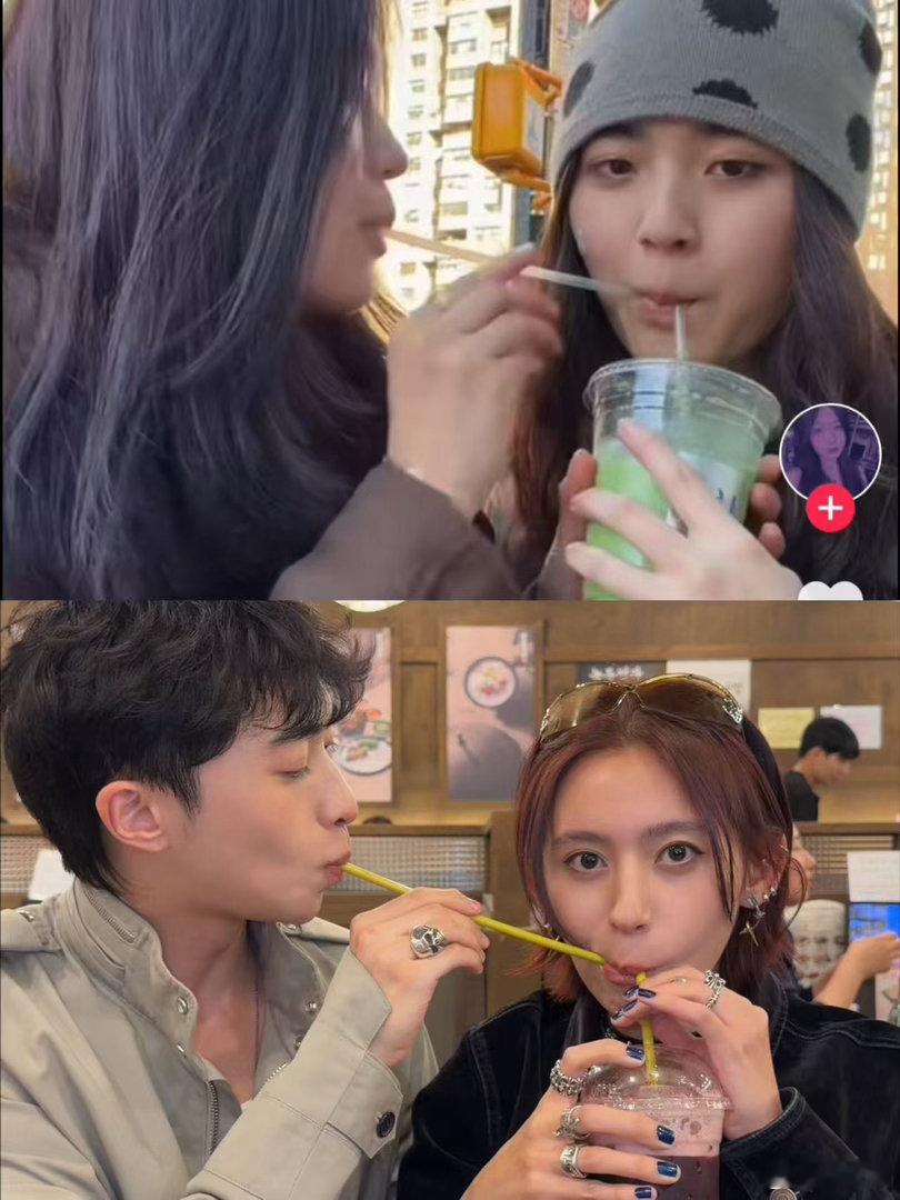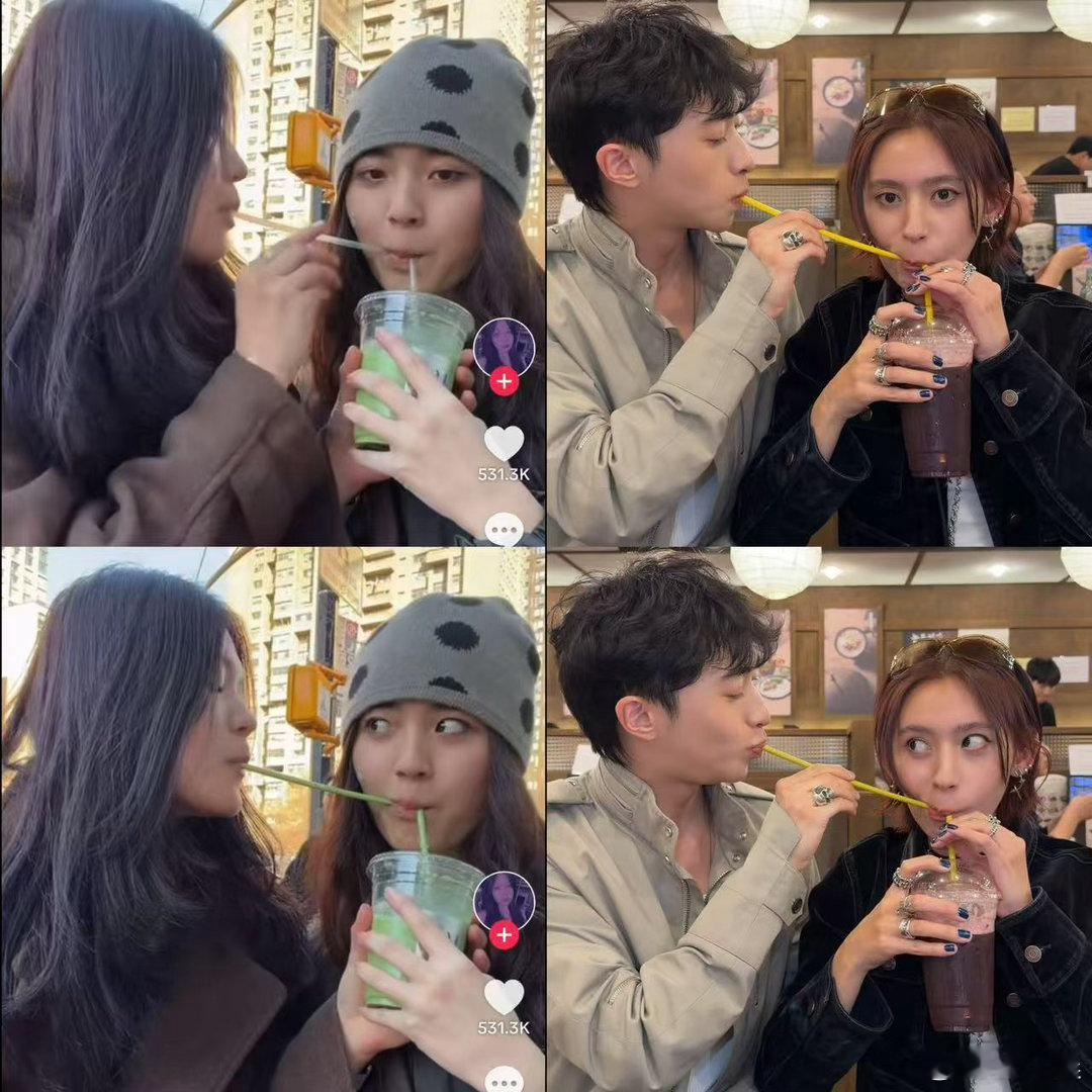 恩利用吸管喝女网红嘴里的饮料 认真复刻热门经典片段,情绪氛围感拉满,简简单单就很有画面感!