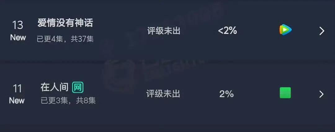 老糖的爱情没有神话和老丽的在人间云合争倒数第一。