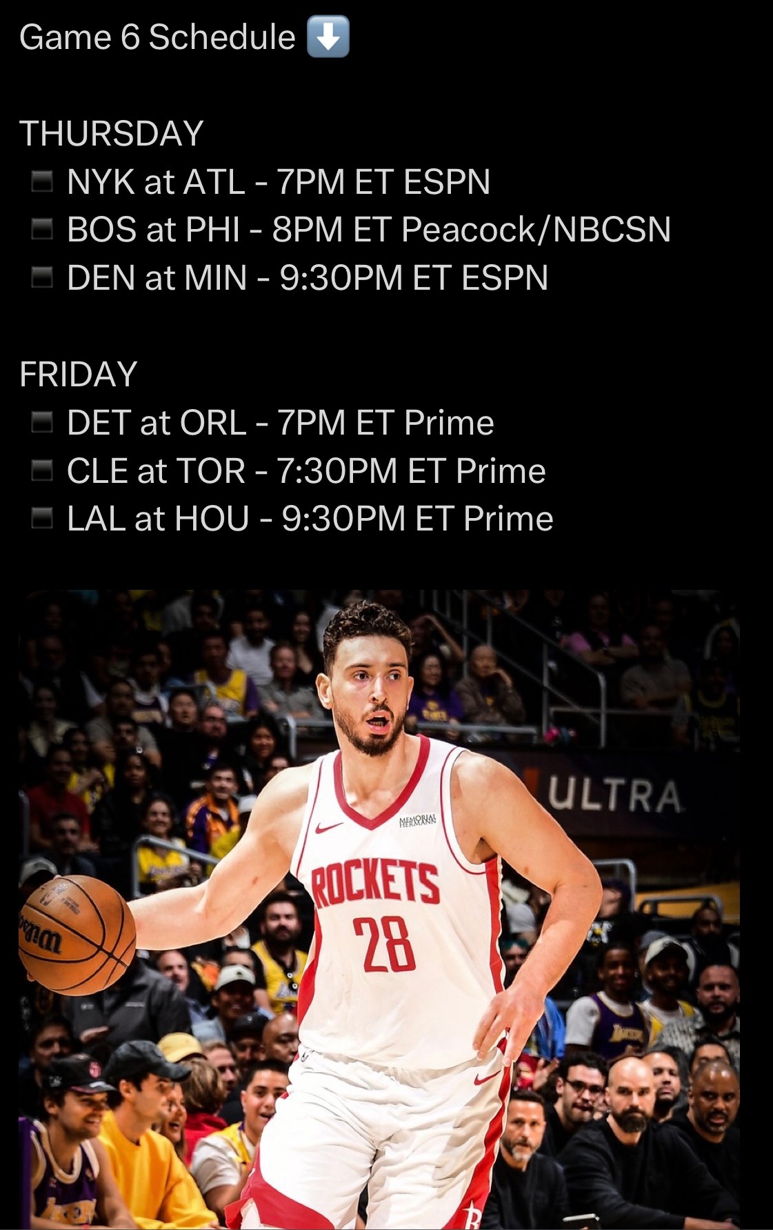 后天:活塞vs魔术G6,骑士vs猛龙G6,湖人vs火箭G6