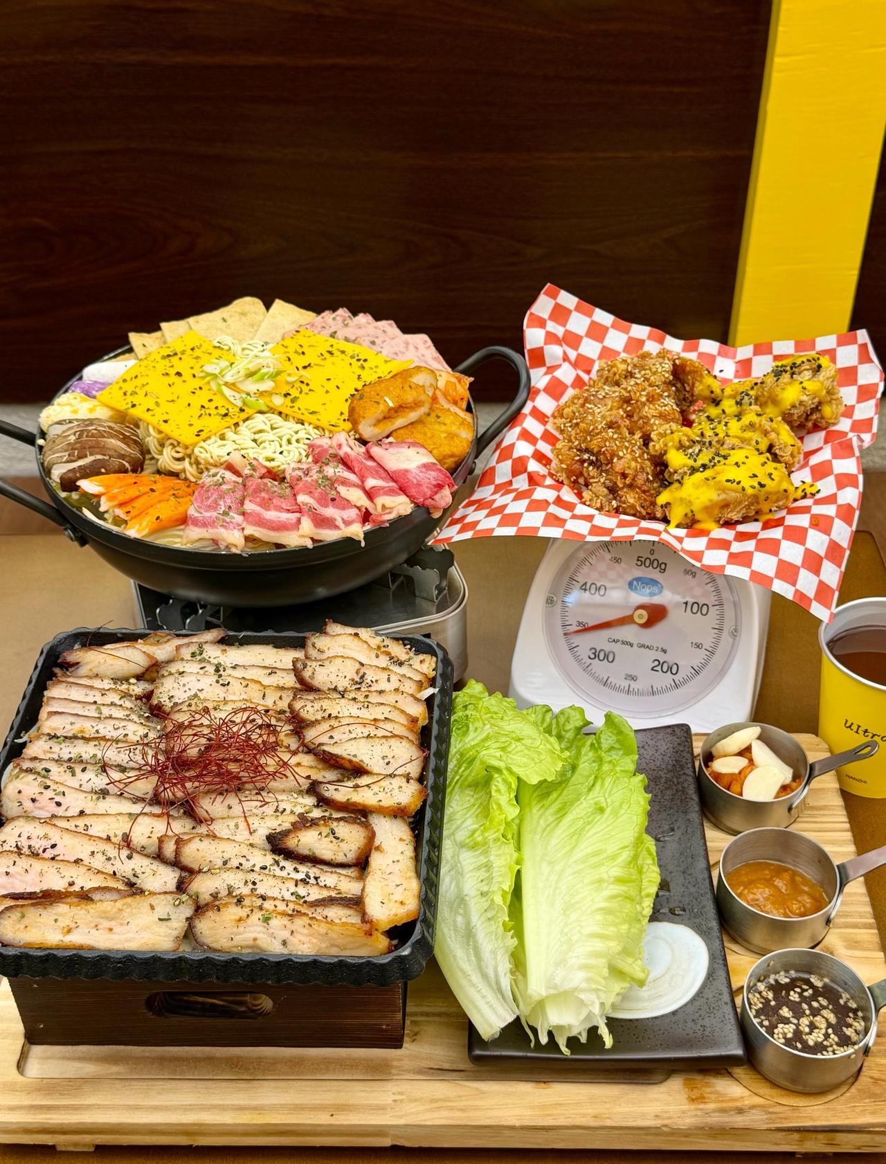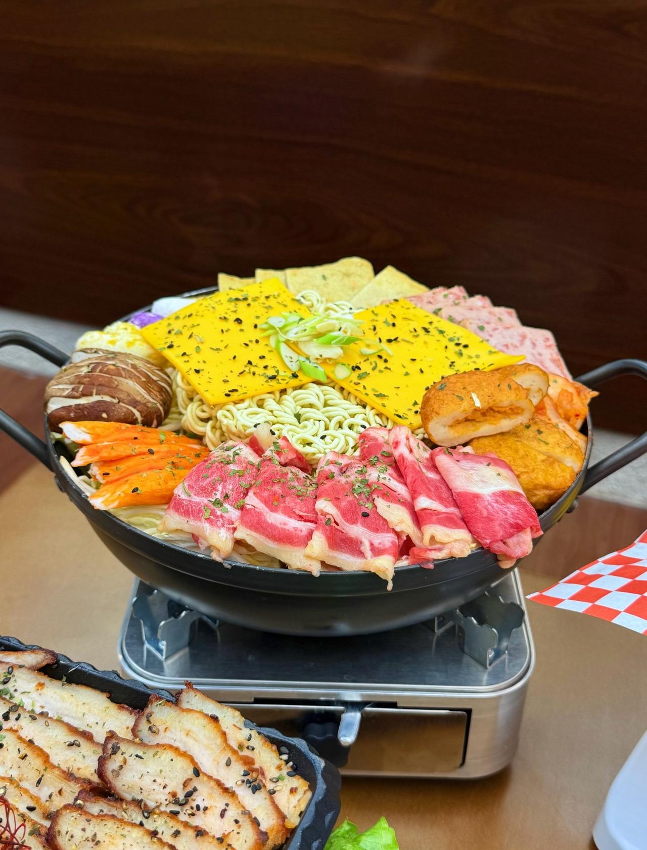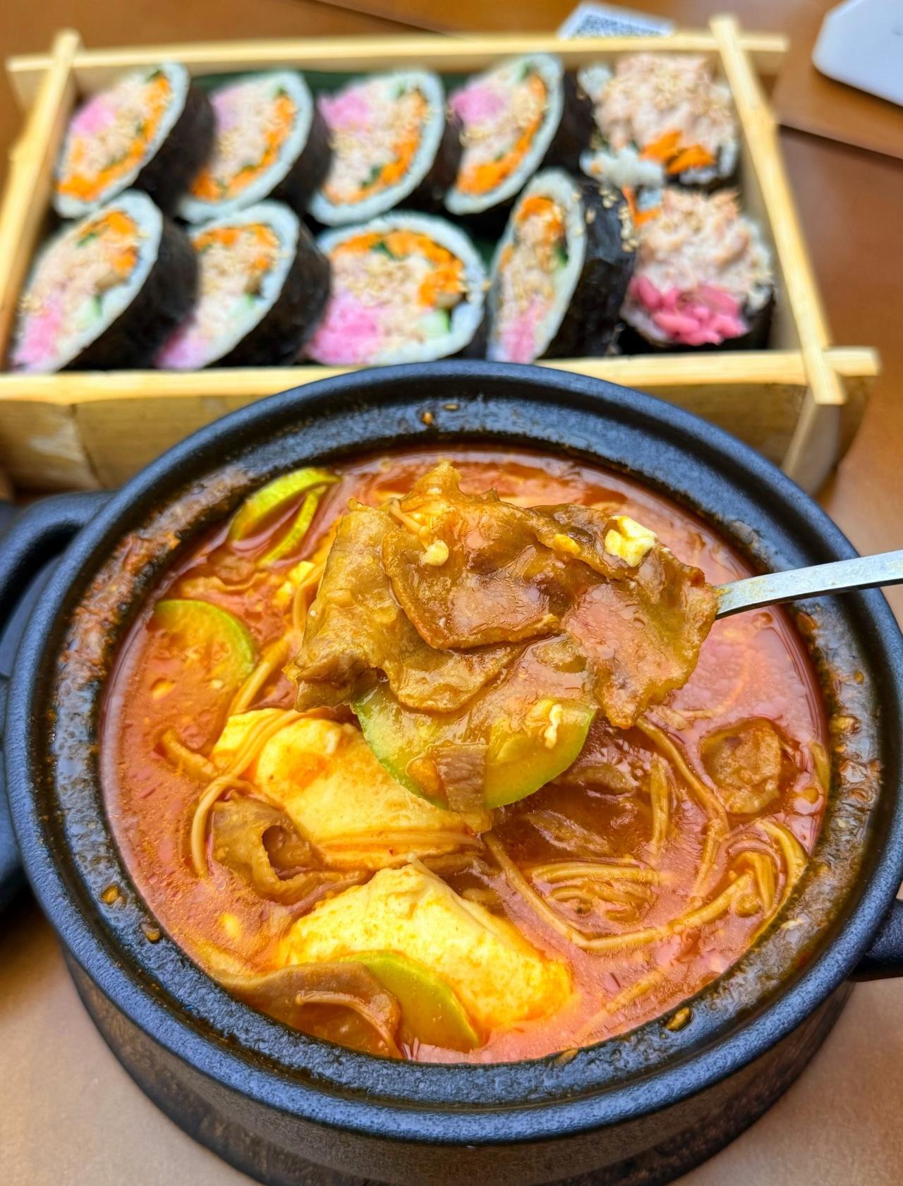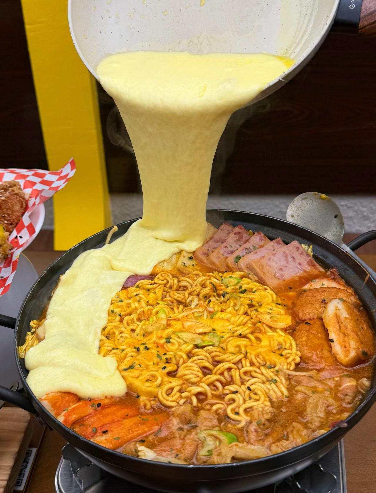 广州体育西!!!近期蕞爱的韩料小店🇰🇷 📍广州 哇.呔叭_韩潮厨房(广州首店) 韩里韩气又很可爱的一家店~ 多巴胺装修让人心情都变好了🥰 🧀芝芝满满部队锅 芝士瀑布倒下来的时候,口水都快流出来了🤤满满的芝士裹着各种料吃,香迷糊了!!!! 🍱金枪鱼卷卷紫菜包饭 好看又好吃😋里面有很多金枪鱼泥~ 🥓蒜烤酥香猪颈肉 猪颈肉烤得油香油香的,用生菜包着大口吃!!