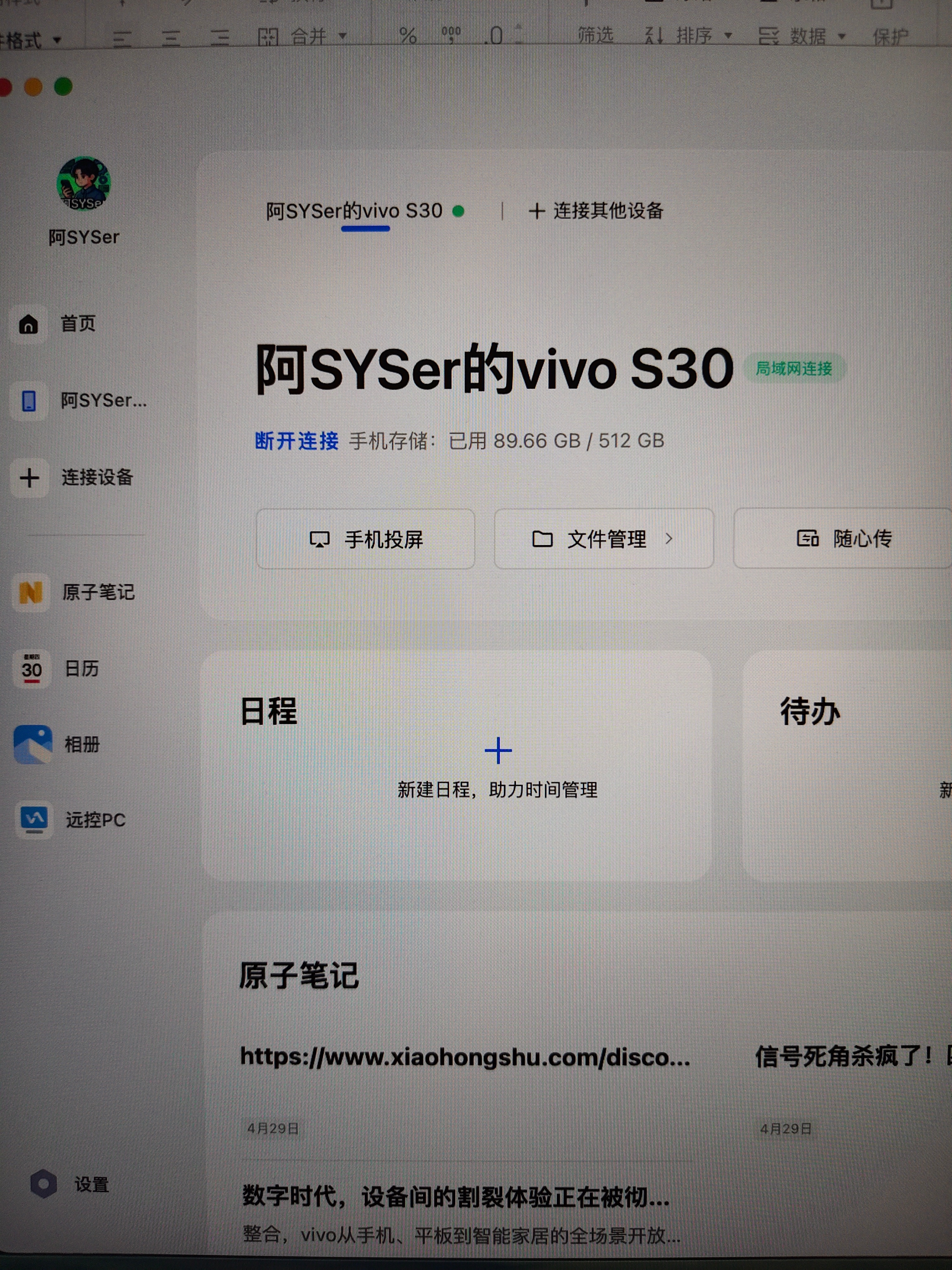 最近的工作流越来越离不开vivo原子办公套件,手机投屏,手机与Mac之间互传文件
