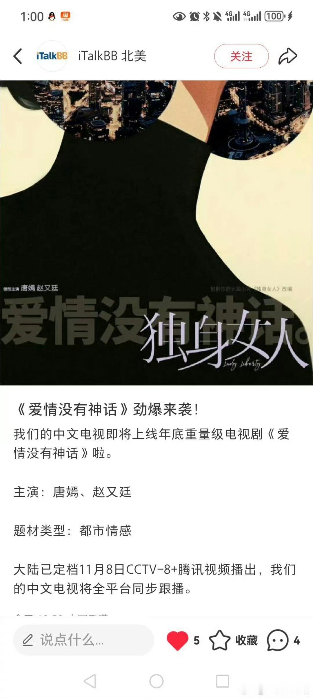 爱情没有神话人设一个赛一个离谱唐嫣被xx害惨了!如果去年11月不出意外,那么《爱情没有神话》就是11月7日央八和香港xx中文台同步播出! 那个时候央八收视底盘高的很呢!自从出意外后,该剧招商也大幅度减少了,半年后央八播出,香港中文台不再同步播出,由于当天定档没啥宣传,开播前两天央八收视1.4,站内热度21000,表现很一般,和预期差距太大!!