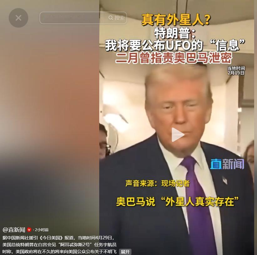当地时间 4 月 29 日,美国总统特朗普在白宫会见 "阿耳忒弥斯 2 号" 任务宇航员时,向在场记者抛出了一个重磅消息。据中国新闻社援引《今日美国》报道,特朗普明确表示,美国政府将在不久的将来向公众公布关于不明飞行物 (UFO) 的 "大量信息"。 特朗普在讲话中说:"我想在不久的将来,我们会尽可能多地公布信息,我们将公布很多以前没有公布的东西。" 他还补充道,"我认为其中一些内容会让人们感到非常有趣。" 这已经不是特朗普近期第一次提及 UFO 解密事宜。就在 4 月 17 日,他在一场政治集会上就曾透露,自己下令五角大楼进行的一项关于不明飞行物的研究 "发现了许多非常有趣的文件",并且 "首批文件的公开将很快、很快开始。" 事实上,特朗普对 UFO 话题的关注由来已久。早在 2020 年他第一任期内,美国国防部就曾公开过三段由海军飞行员拍摄的 "不明空中现象" 视频。 当时特朗普在接受采访时就表示,"我只想知道是不是真的,那视频真是绝了。" 而在今年 2 月 19 日,特朗普更是在社交媒体上正式发文,指示战争部长及相关部门与机构,启动识别并公布与外星生命、不明空中现象 (UAP) 以及不明飞行物 (UFO) 有关的政府文件。 他当时称,解密范围将包括与这些 "高度复杂但极具吸引力和重要性" 的议题相关的 "任何及所有信息"。 特朗普此次推动 UFO 信息公开,正值美国政府对不明空中现象的研究日益制度化的背景下。 2021 年 6 月,美国国家情报总监办公室发布首份官方 UAP 报告,以 "不明航空现象" 取代了传统的 "不明飞行物" 提法。 报告显示,2004 年至 2021 年,美方共记录了 144 起不明航空现象,其中有 80 起被多个传感器观测到。 2022 年 5 月,美国国会众议院情报委员会举行了 50 多年来首次关于不明航空现象的听证会。同年 7 月,五角大楼正式成立 "全域异常解决办公室 (AARO)",专门负责调查空中、水下和太空出现的不明物体。 根据五角大楼公布的信息,AARO 成立以来已经收到了数百份新的 UFO 报告。 然而,该办公室在多份官方报告中都明确表示,截至目前为止,没有发现任何可能证明存在地外生命、活动或技术的证据。 2024 年 3 月,AARO 发布的一份报告指出,自第二次世界大战结束以来,在政府调查中没有发现表明存在外星技术的证据,并得出结论,大多数目击事件都是被错误识别的普通物体和现象。 AARO 代理主任蒂姆・菲利普斯当时表示,他的团队获得了相当大的权限,对政府最敏感的项目进行了接触,政府中没有人影响报告中的调查结果。 尽管官方一再强调没有发现外星生命的证据,但美国公众对 UFO 话题的兴趣一直居高不下。 根据皮尤研究中心 2021 年的一项调查,约三分之二的美国人倾向于认为有外星人存在,约半数美国成年人认为军方发现的不明飞行物 "确实" 或 "大概率" 是存在地外生命的证据。 而 2025 年的一项民调显示,62% 的美国人相信政府瞒报了不明现象的信息。这种普遍存在的不信任感,使得 UFO 话题在美国社会拥有广泛的群众基础。 值得注意的是,特朗普此次高调宣布将公布 UFO 信息,正值他第二任期执政百日之际。 4 月 29 日当天,特朗普在密歇根州马科姆县举行了纪念执政百日的集会,用了整整 90 分钟自我吹嘘,称这是 "美国历届政府最成功的头 100 天"。 有分析认为,特朗普选择在这个时间点抛出 UFO 话题,可能有多重政治考量。 一方面,UFO 话题能够吸引大量公众关注,转移人们对其他争议性议题的注意力;另一方面,这也能帮助他巩固基本盘,争取那些对政府持怀疑态度的选民的支持。 不过,对于特朗普此次承诺的 "大量信息" 究竟会包含什么内容,目前还不得而知。 从以往的经验来看,美国政府公布的 UFO 信息大多是军方目击报告、雷达数据和飞行员证词的整理,很少有突破性的内容。 AARO 主任肖恩・柯克帕特里克曾多次表示,他们的调查工作严格遵循数据和科学,"最常见的误解是,所有可能的现象都是一样的,都是地球外的,但这两者都不是真的。" 他还指出,在调查的所有案件中,绝大多数 "很容易解释",只有大约 2-5% 的案件是无法解释的。 无论如何,特朗普的这一宣布已经在全球范围内引发了广泛关注。许多人期待美国政府能够公布更多关于不明空中现象的真实信息,解开困扰人类多年的谜团。但也有不少人对此持谨慎态度,认为这可能只是特朗普的又一次政治作秀。 最终,美国政府会公布什么样的信息,这些信息能否解答人们心中的疑问,我们还需要拭目以待。